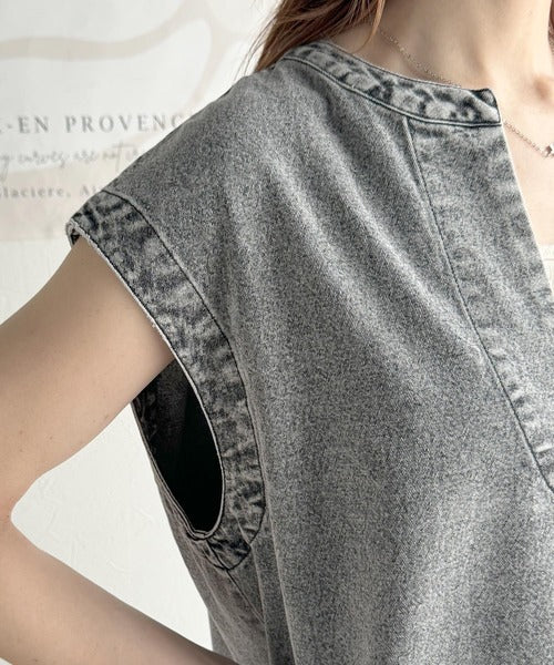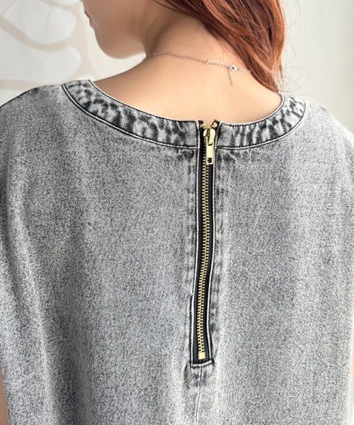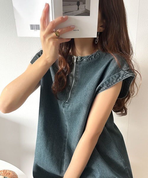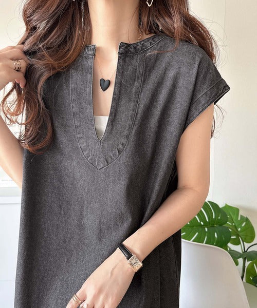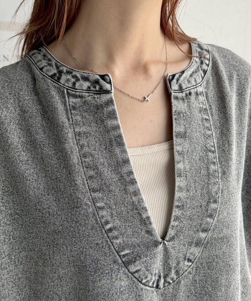・デニムカフタン調チュニック