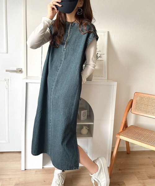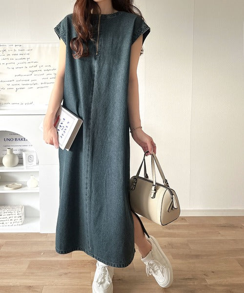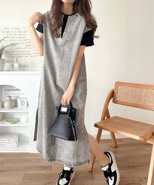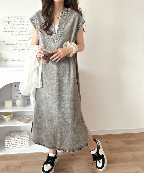 AWに登場した大人気商品、カフタン調サイドスリット圧縮ニットワンピース「ce0940074」のデニムバージョン。