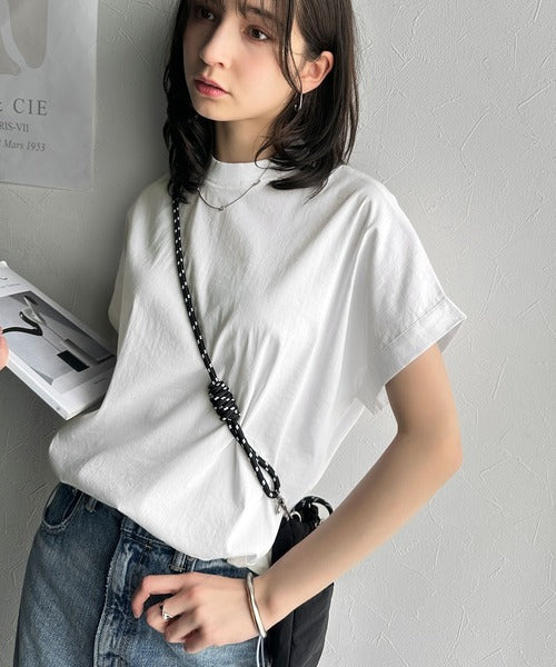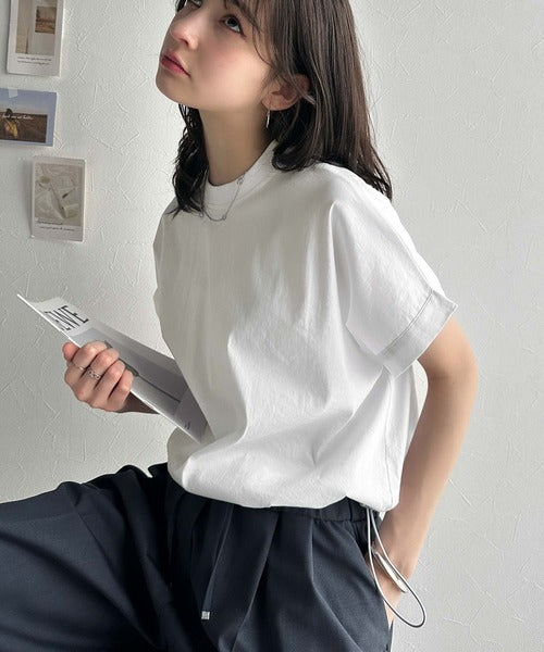 ブラウス素材で、衿はZIPで着脱可能なモックネック◎