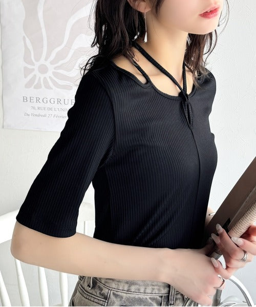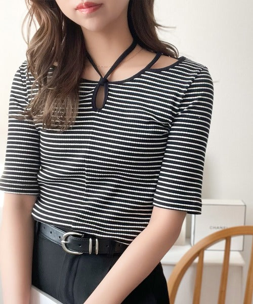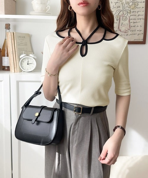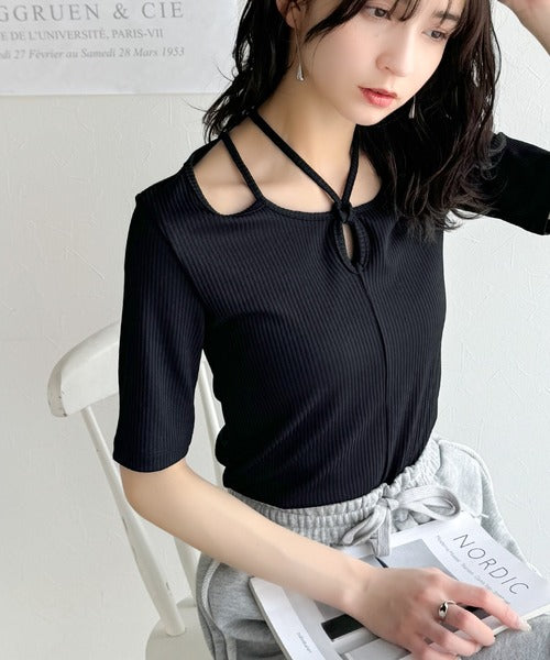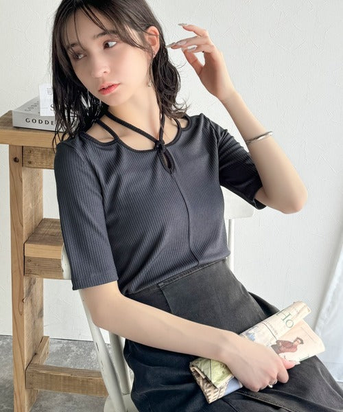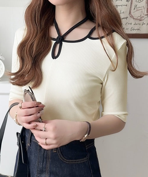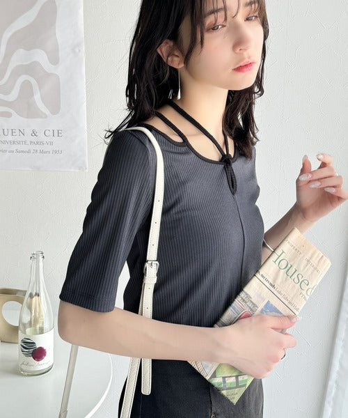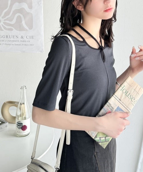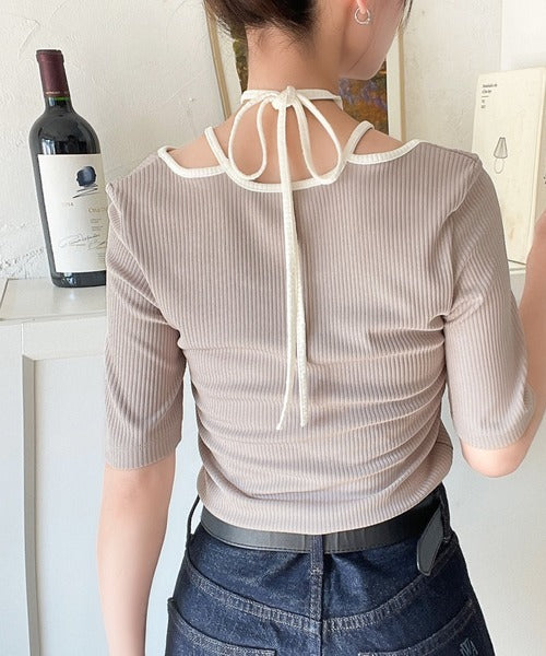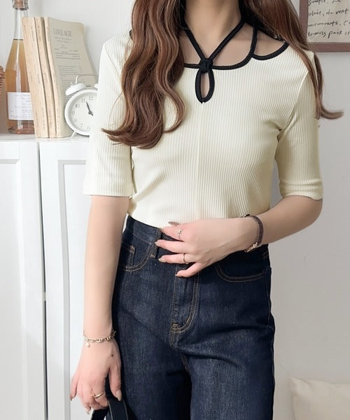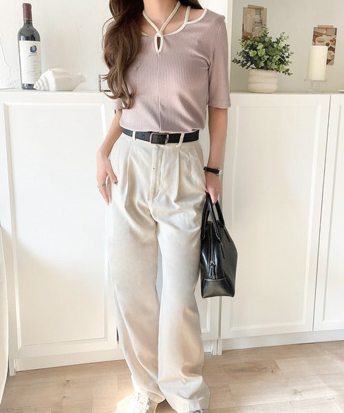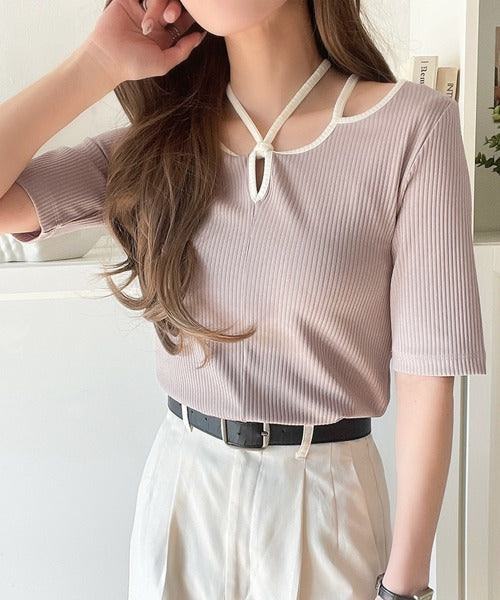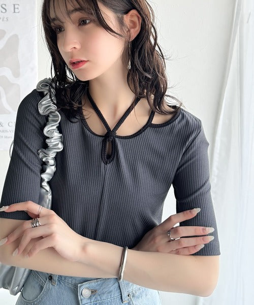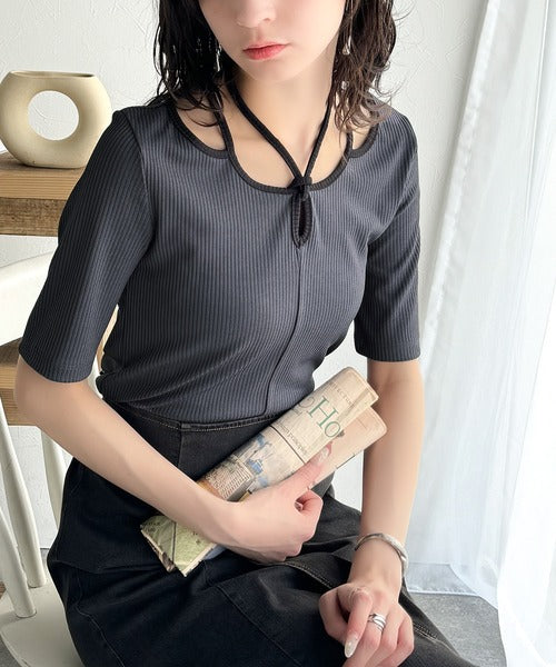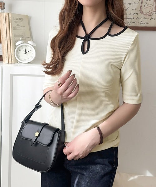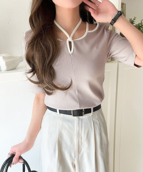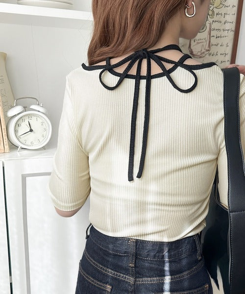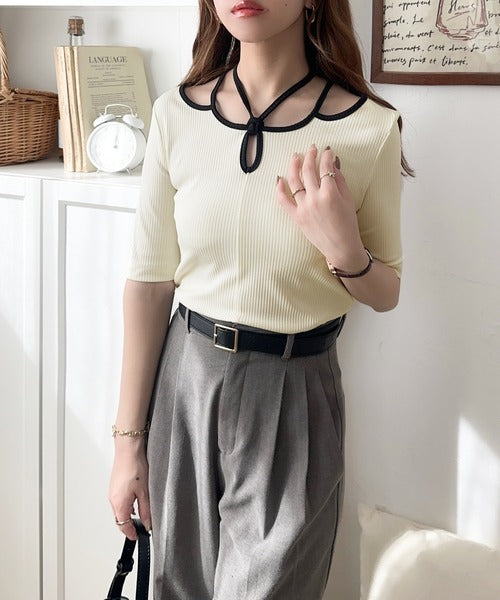 デコルテを美しく演出する。パイピング配色リブカットソー(半袖) ce1240059