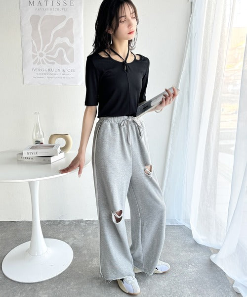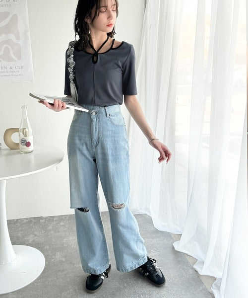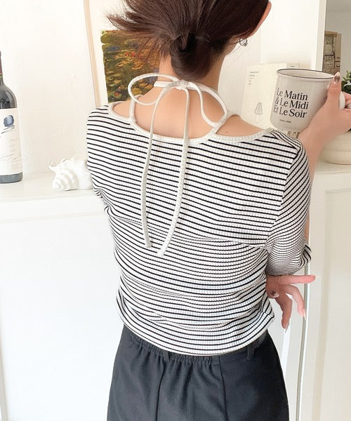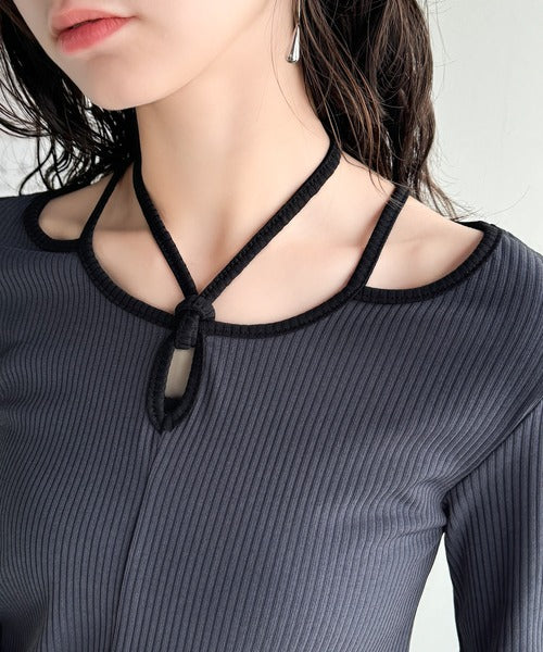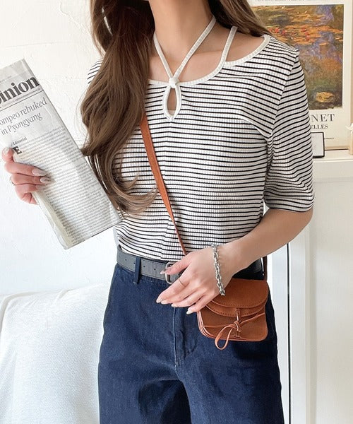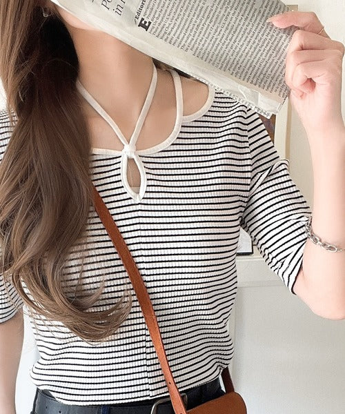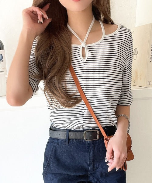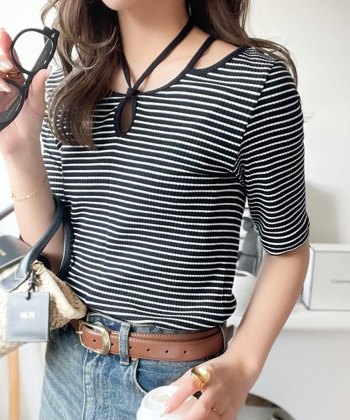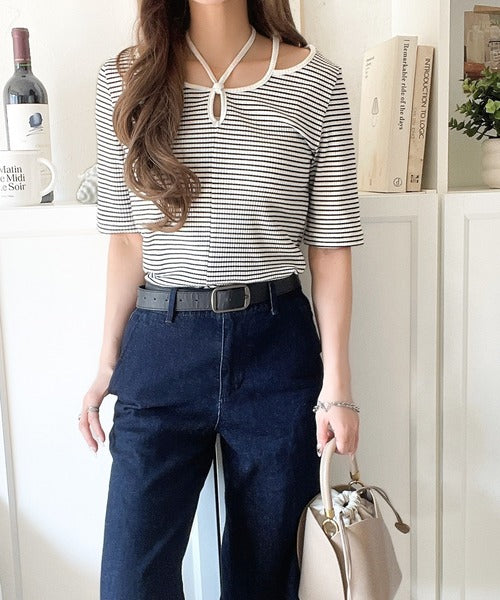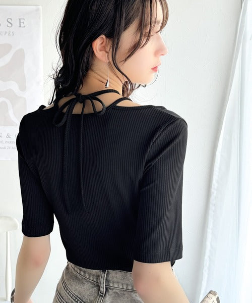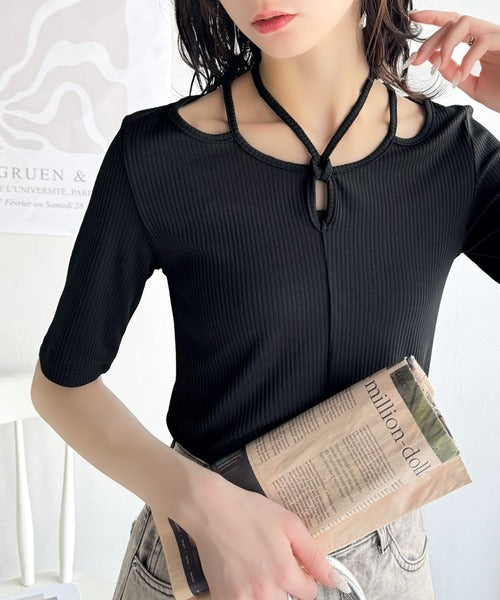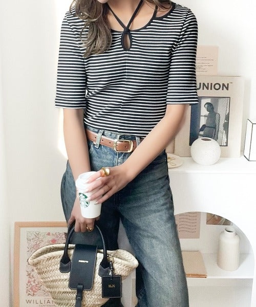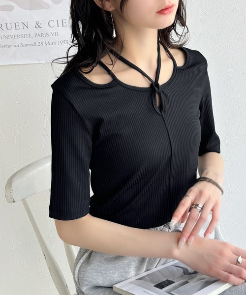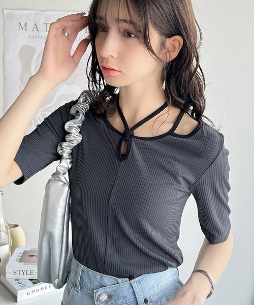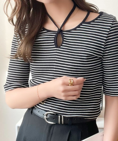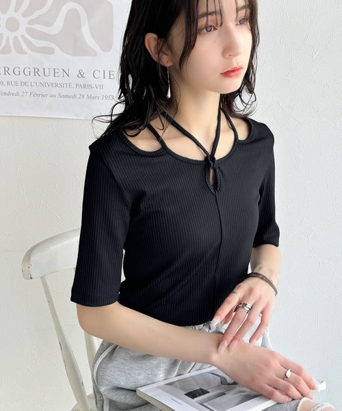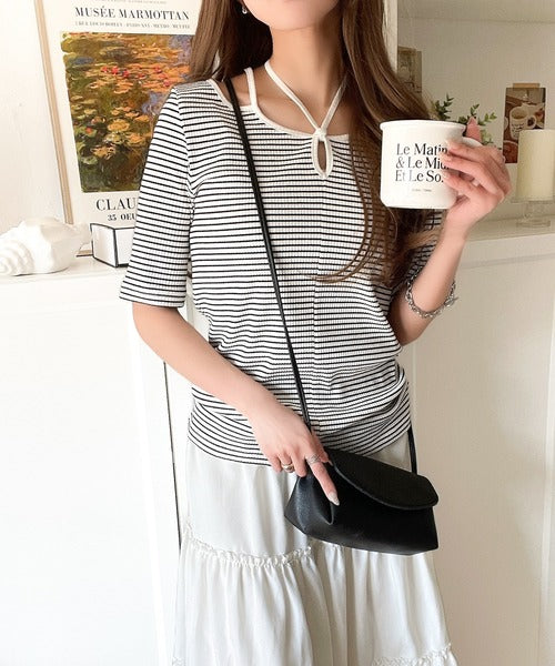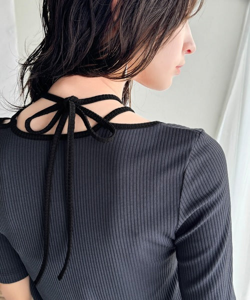 デコルテを美しく演出する。パイピング配色リブカットソー(半袖) ce1240059