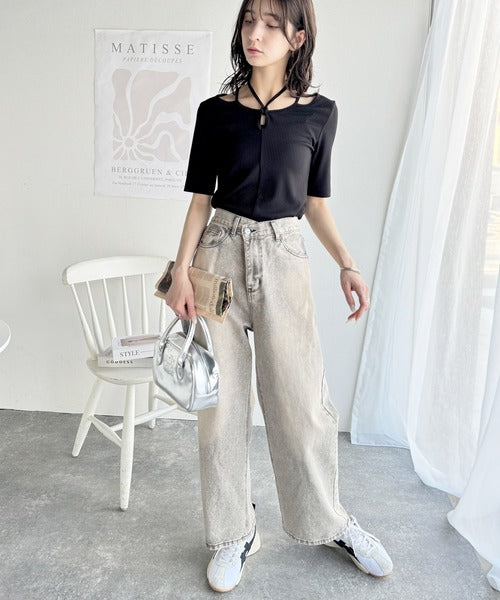 その日の気分に合わせてカーブデニムやフレアパンツを合わせてもOK◎