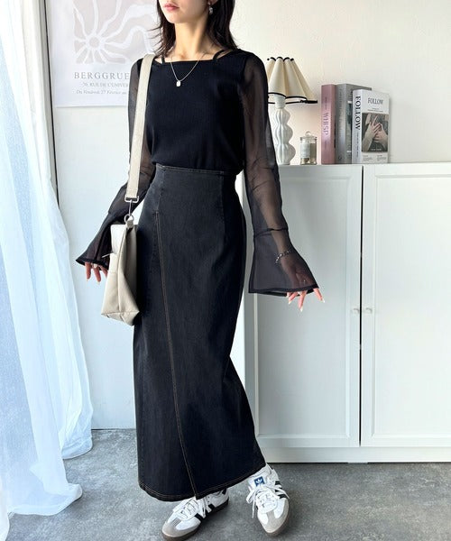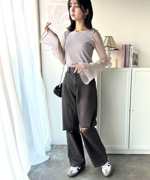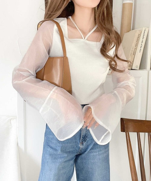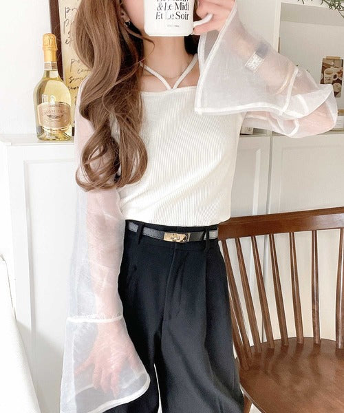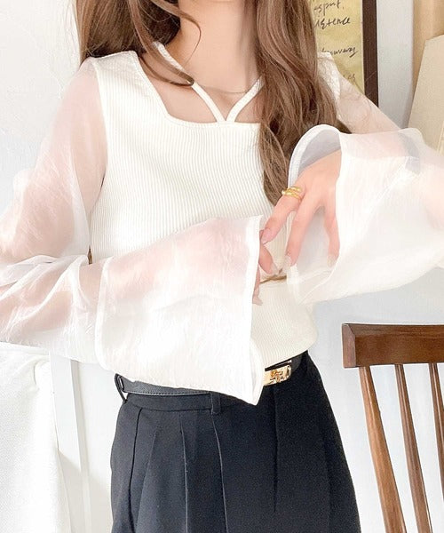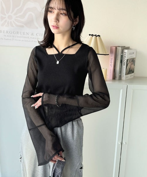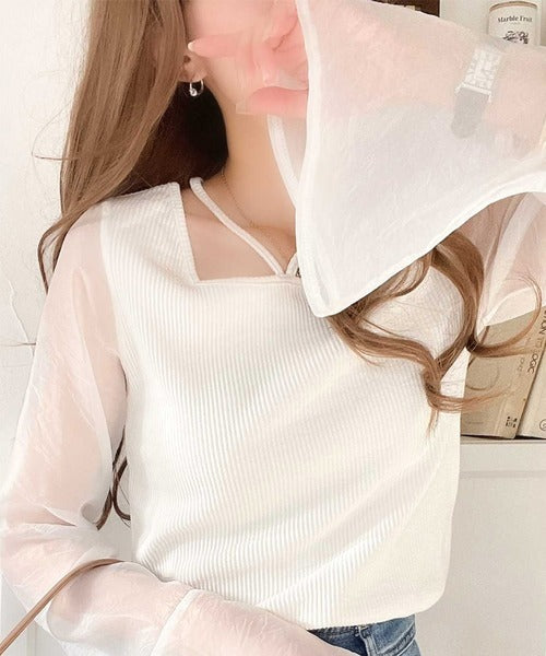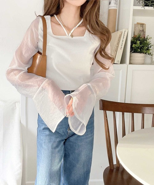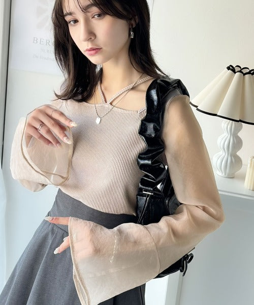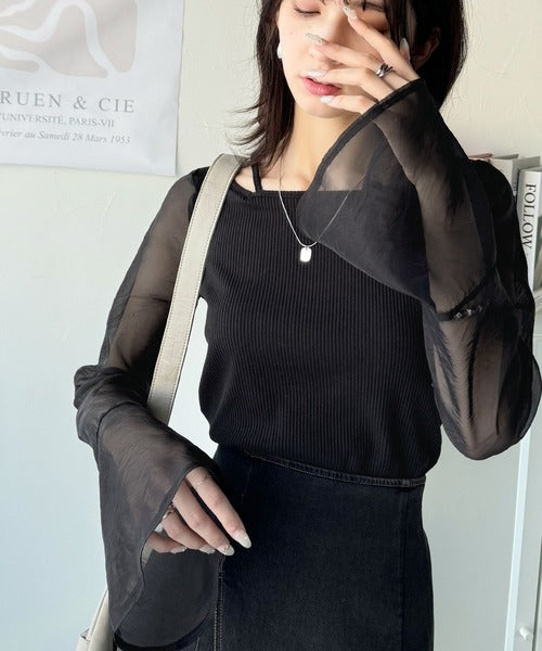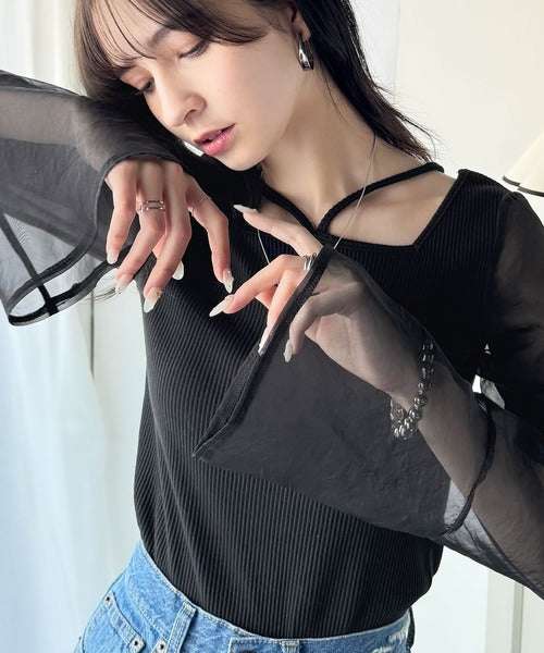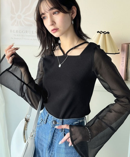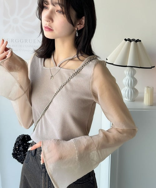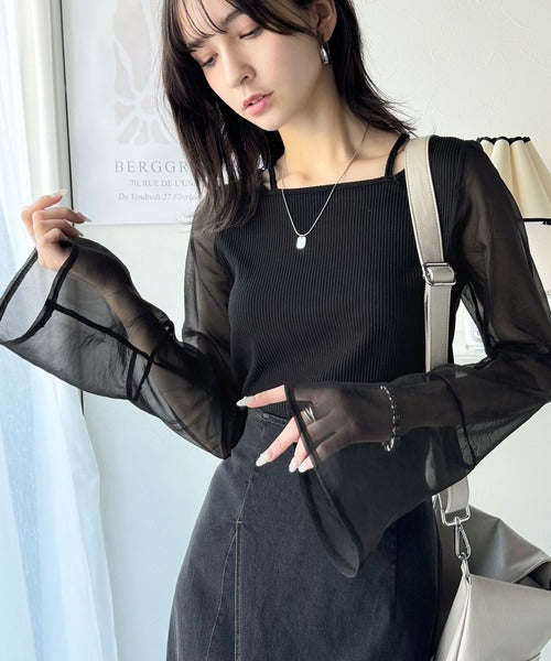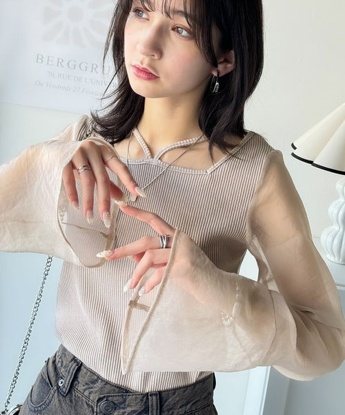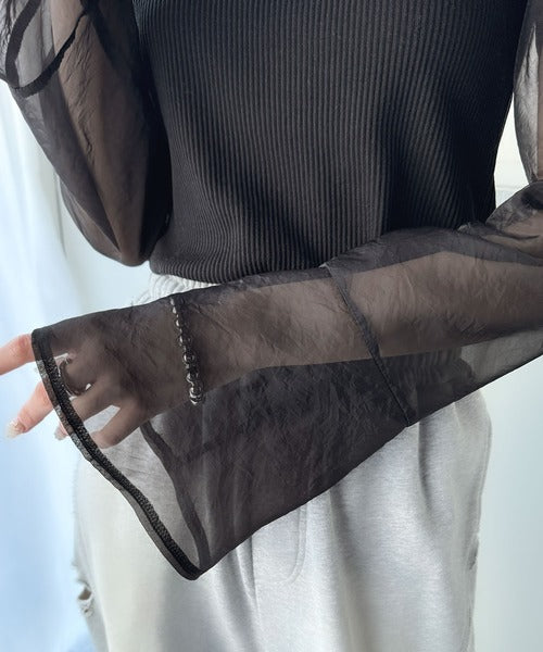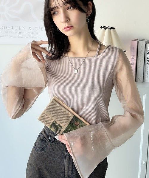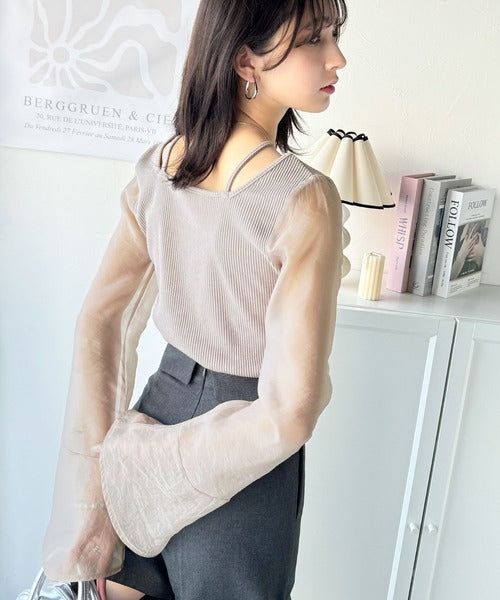 繊細な美しさを纏う。前後2wayオーガンジースリーブリブトップス ce1240060