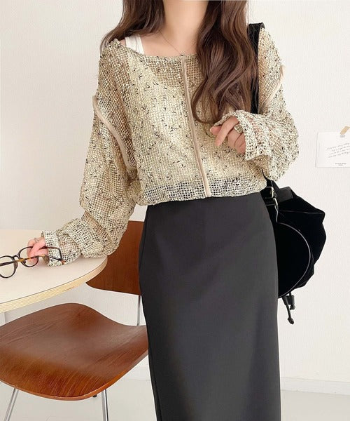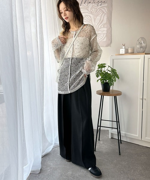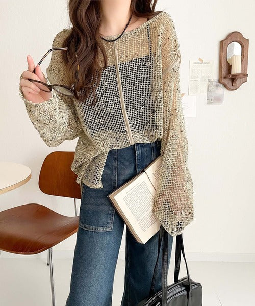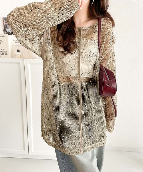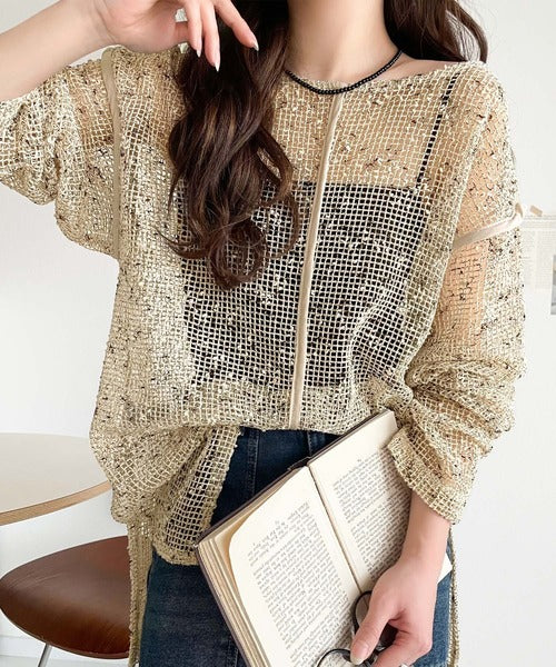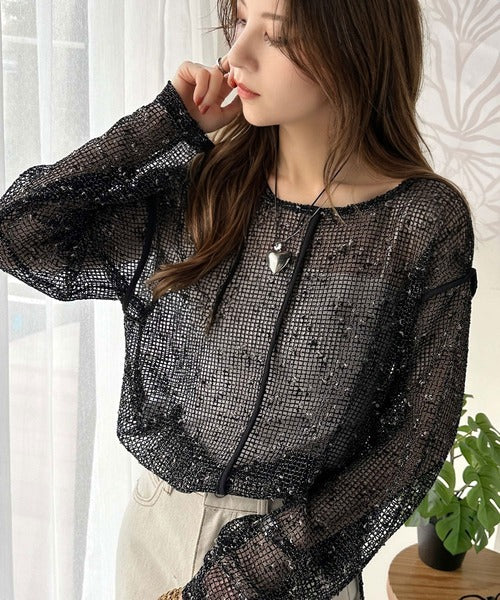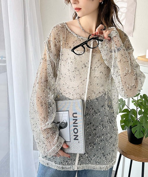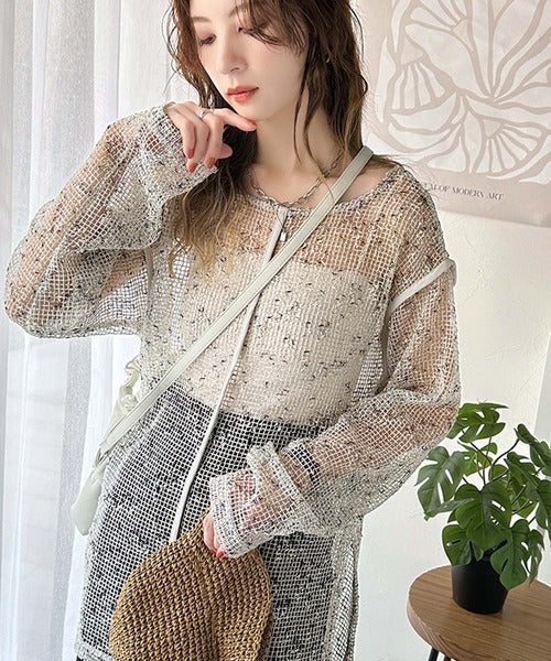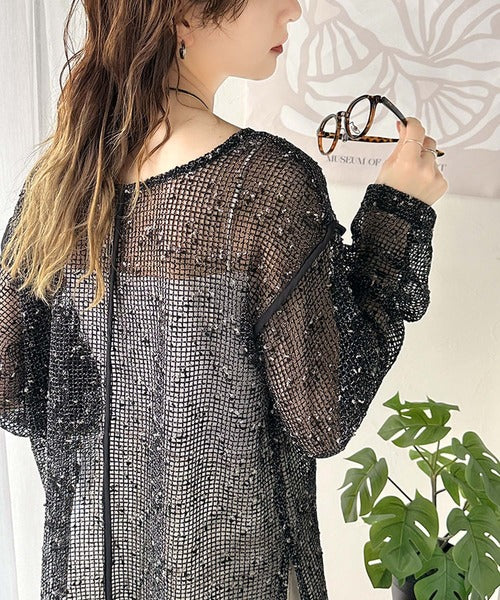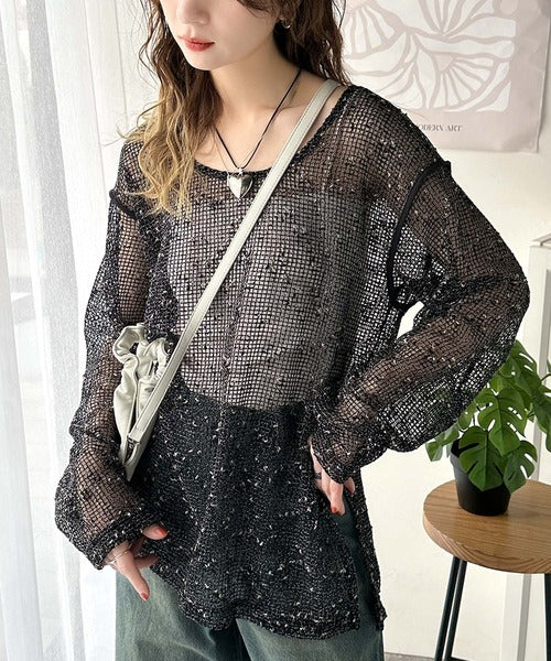 透け感とルーズシルエットが今っぽい!前後2wayメッシュニットトップス(長袖) ce1240067