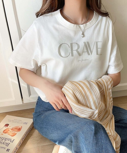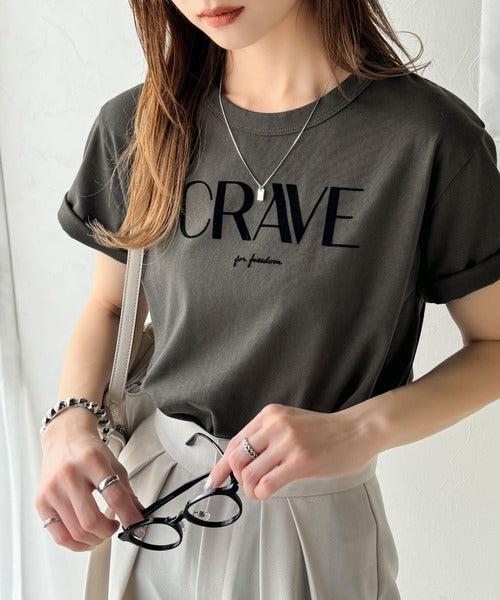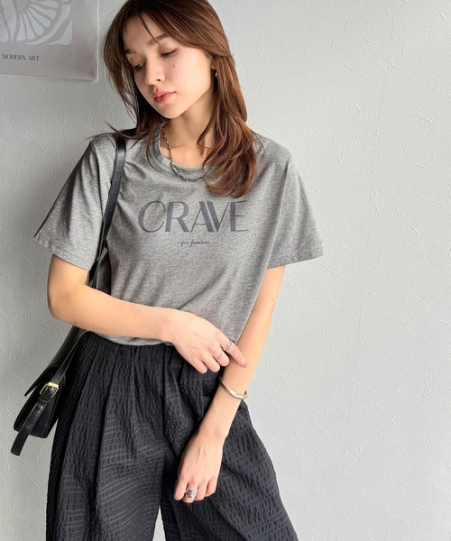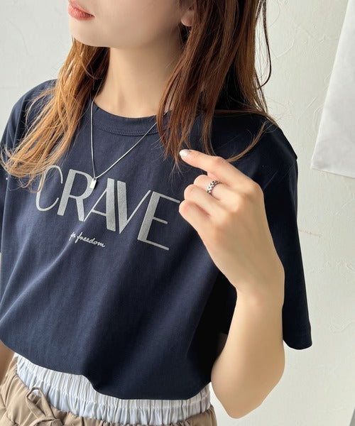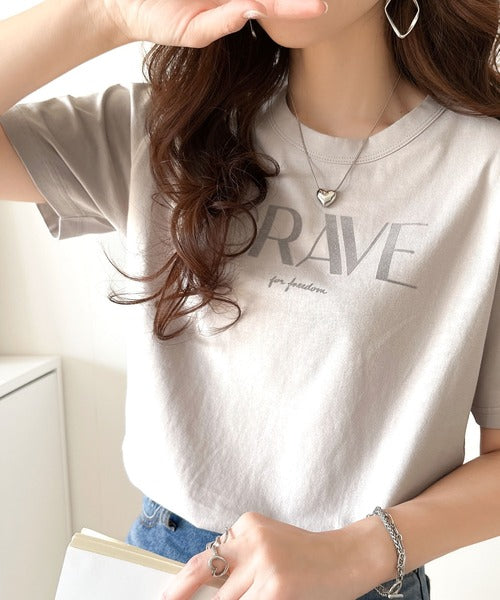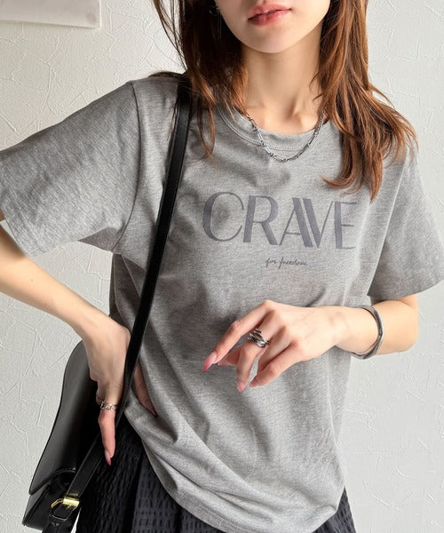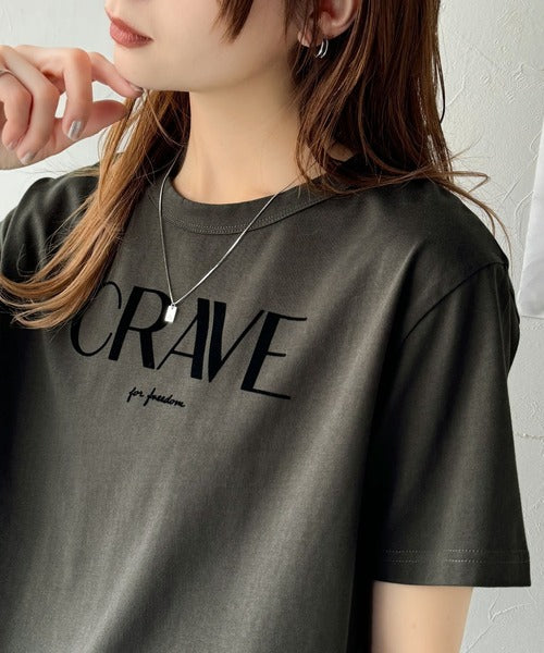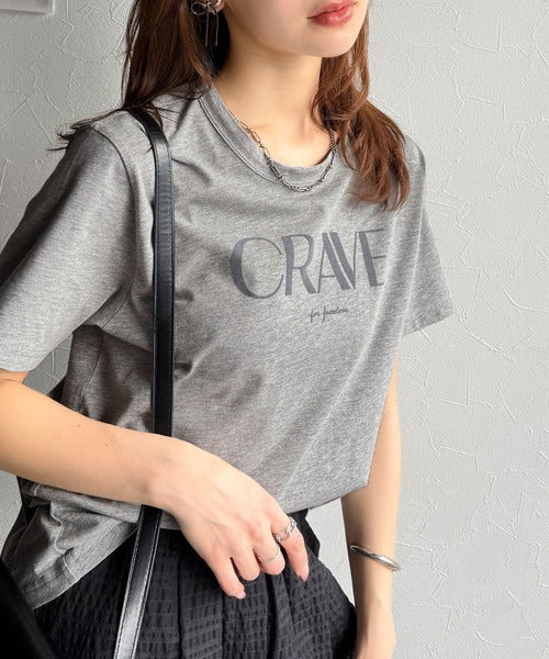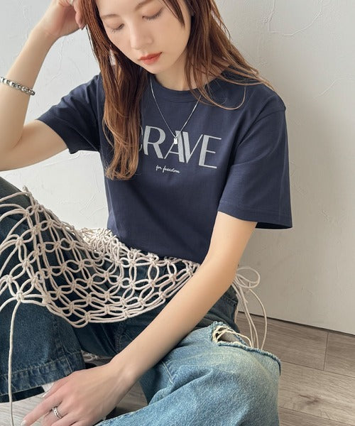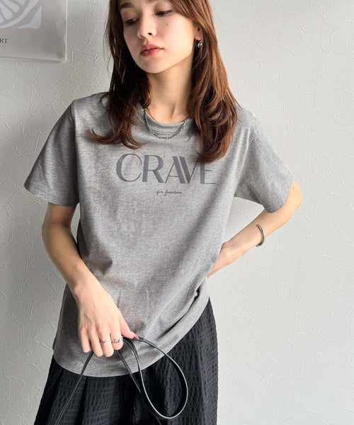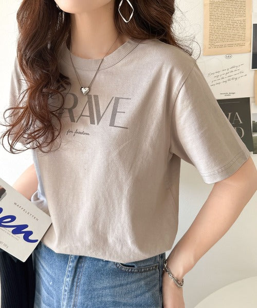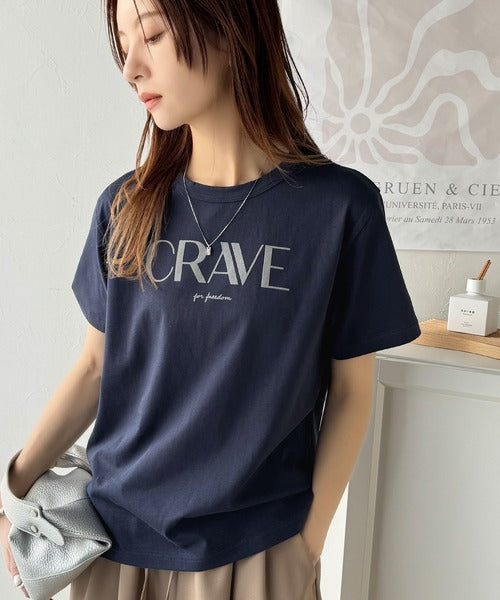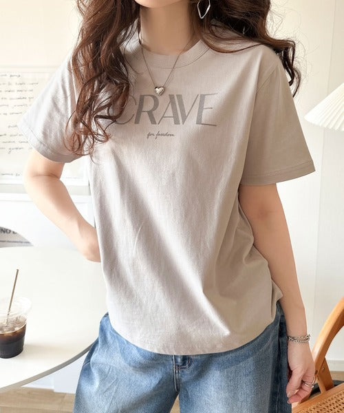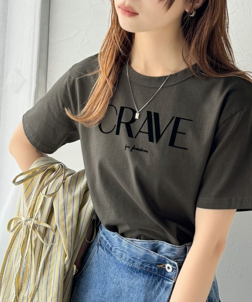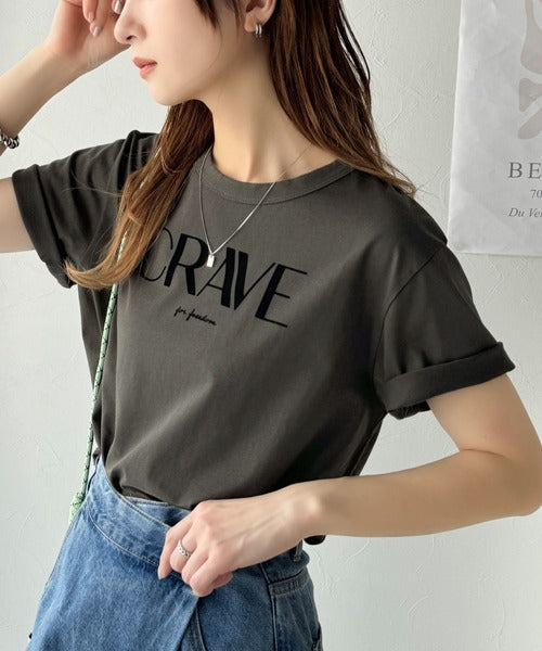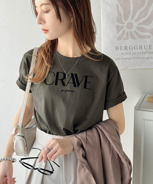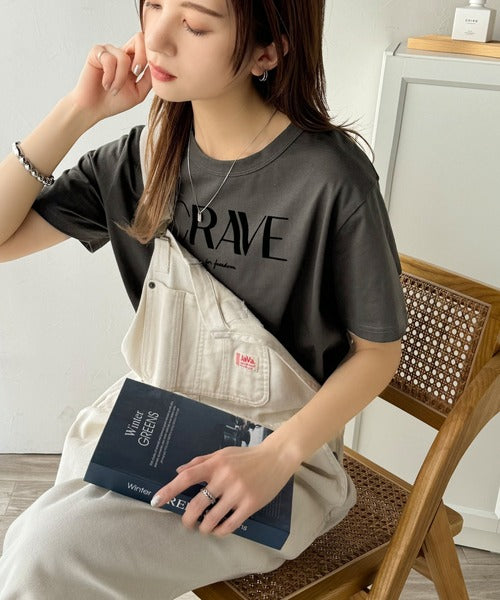【sustaina+】垢抜けた大人カジュアル。オーガニックコットン100%フロッキーロゴプリントTシャツ ce1260398