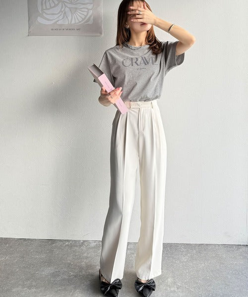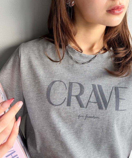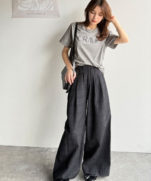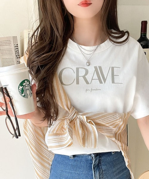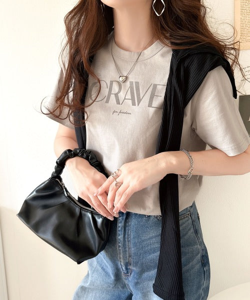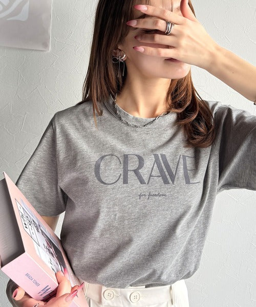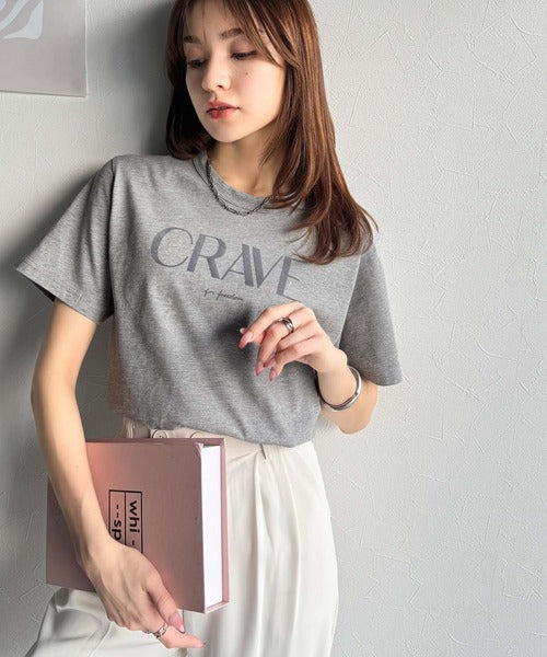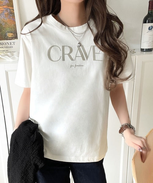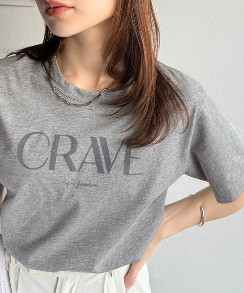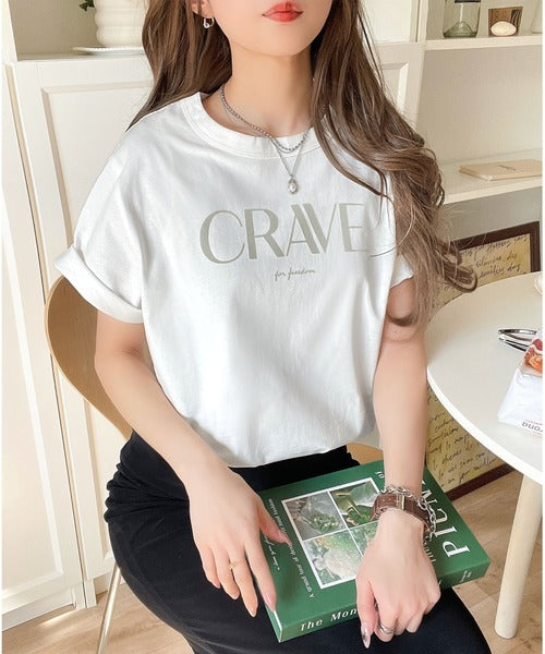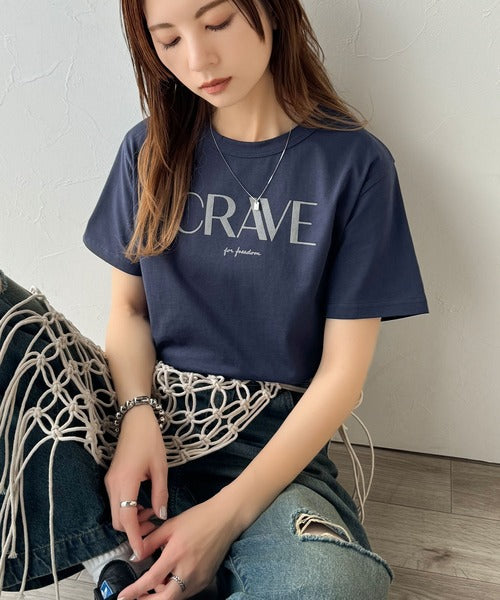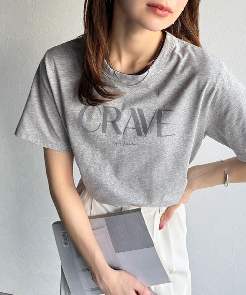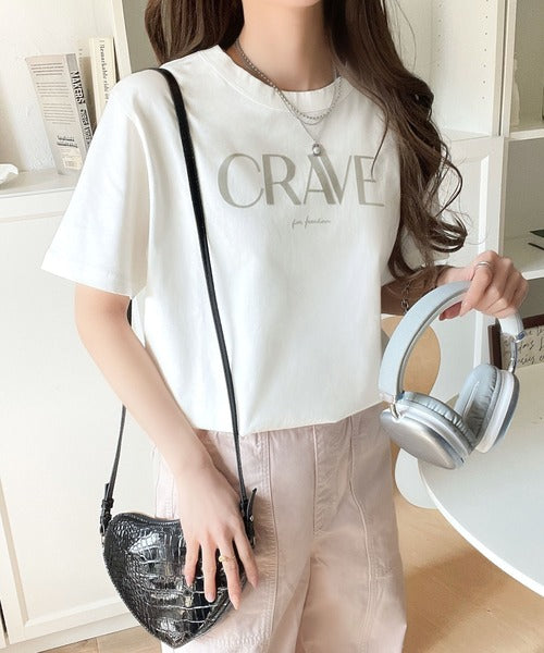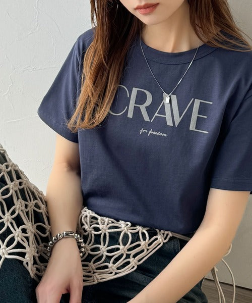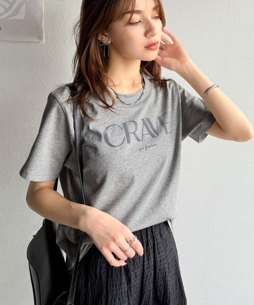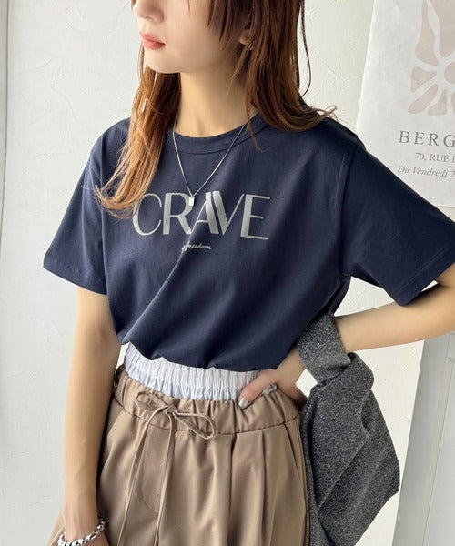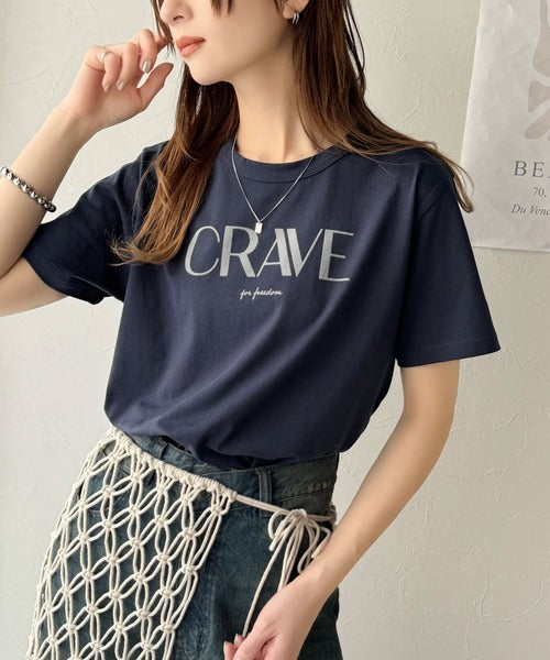 【sustaina+】垢抜けた大人カジュアル。オーガニックコットン100%フロッキーロゴプリントTシャツ ce1260398