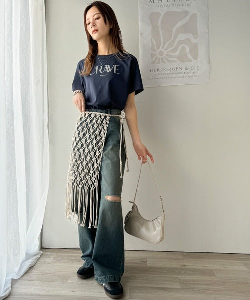 その日の気分に合わせてカーブデニムやフレアパンツを合わせてもOK◎