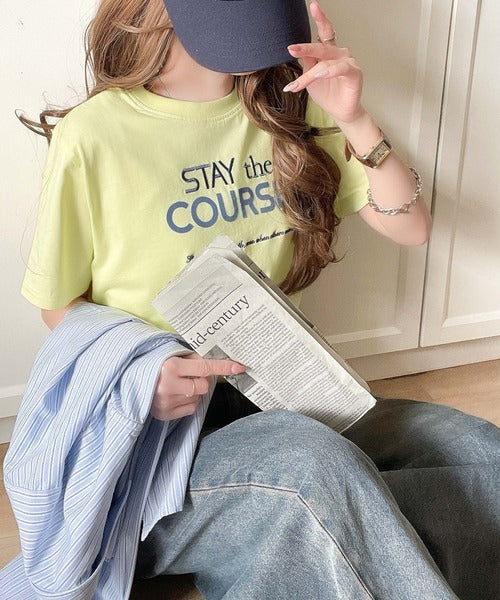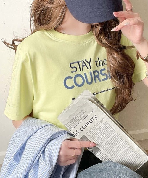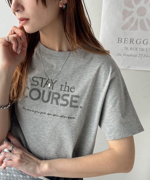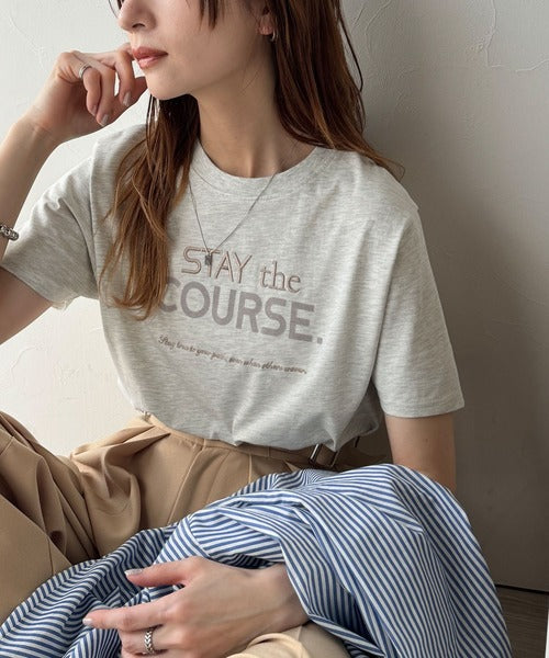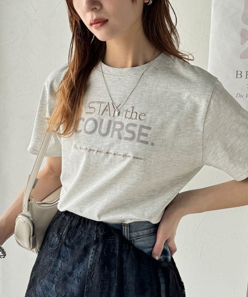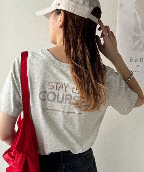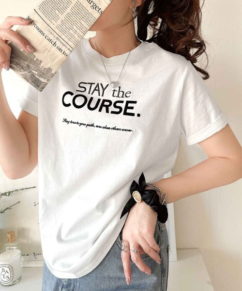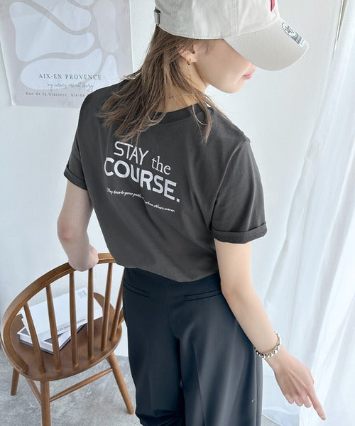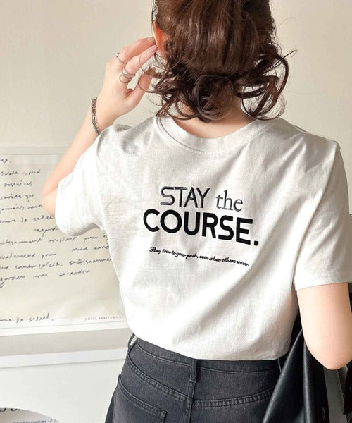 【sustaina+】シンプルなのに格上げ感抜群。オーガニックコットン100%前後2wayロゴ刺繍&フロッキーTシャツ(半袖) ce1260399
