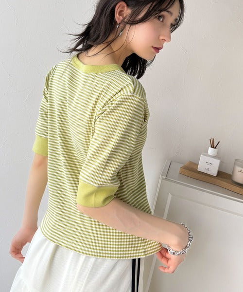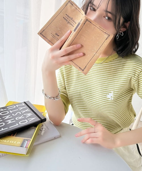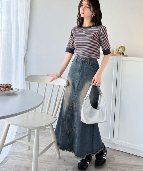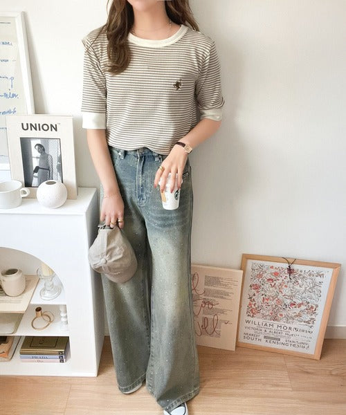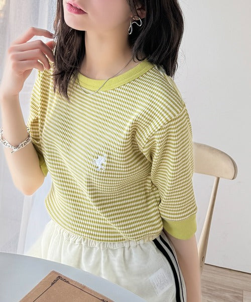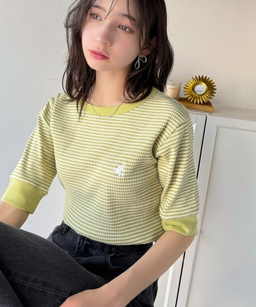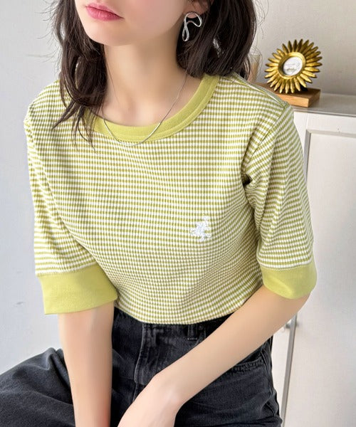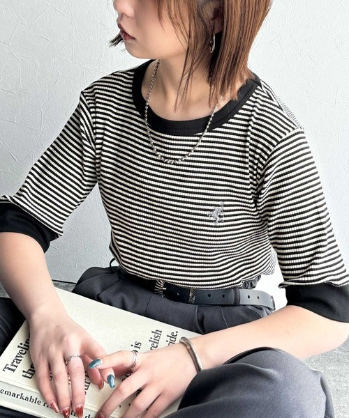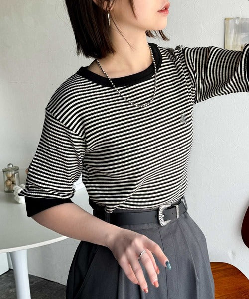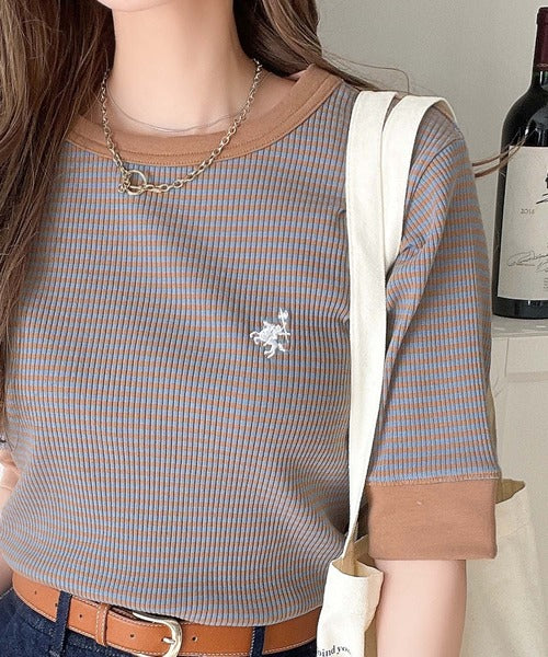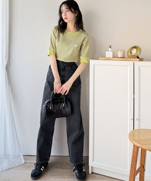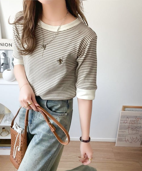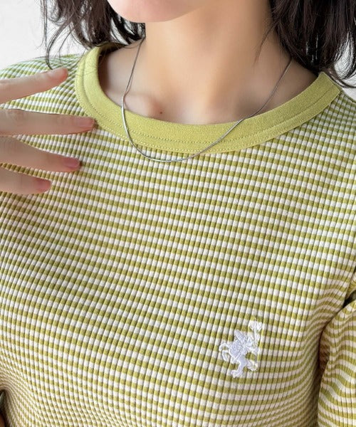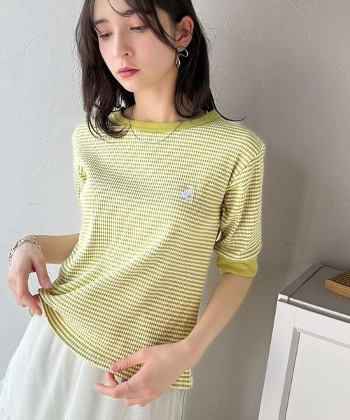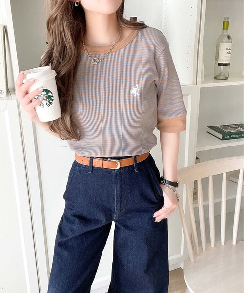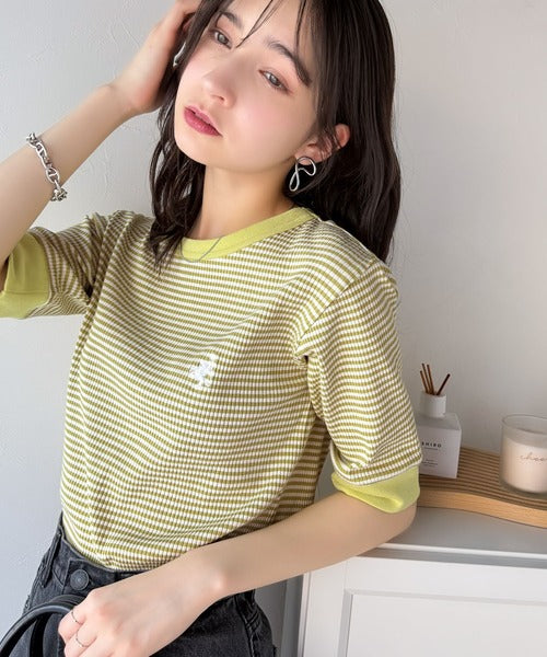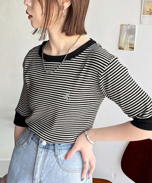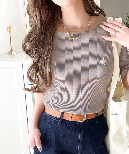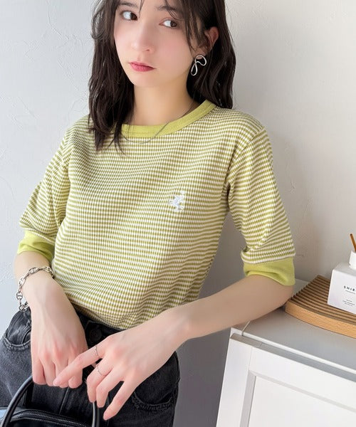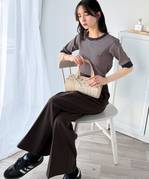 大人可愛いの新定番。袖リンガーボートネック胸刺繍ボーダーTシャツ(半袖) ce1260419