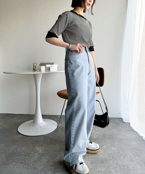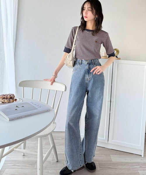 その日の気分に合わせてカーブデニムやフレアパンツを合わせてもOK◎