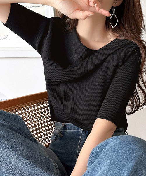 大人気、デコルテを美しく魅せるドレープデザインニットに5分袖バージョンが登場!