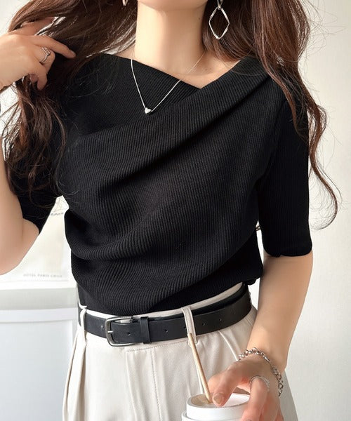 大人気ドレープデザインニットの五分袖バージョン!