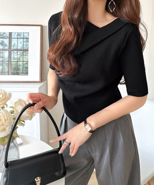 1枚で雰囲気美人。暑い日も、やっぱり上品でいたい。5分袖ドレープニット(半袖) ce1260474