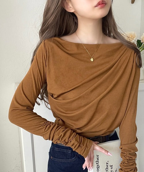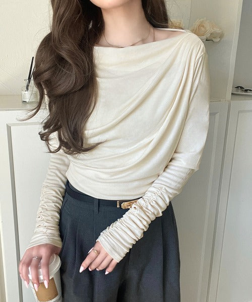 華奢見え洗練ドレープ♪アシメドレープオフショルフライスプルオーバー(長袖) ce1260486