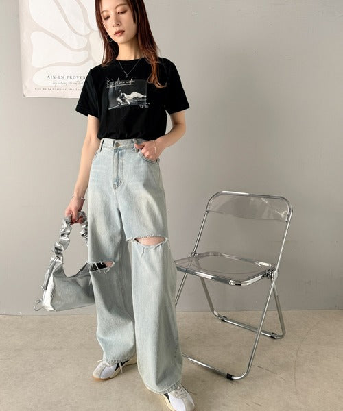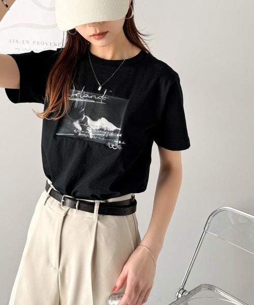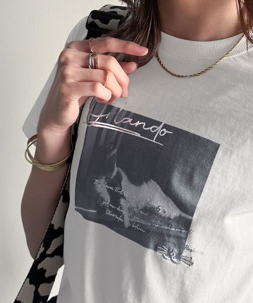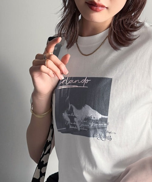 こちらのシルケット風猫フォト箔×刺繍Tシャツは、トレンド感あふれるデザインが特徴。