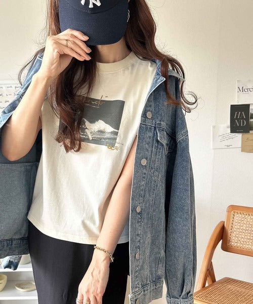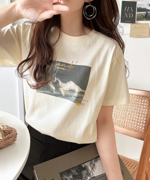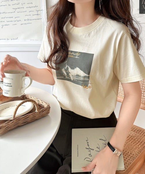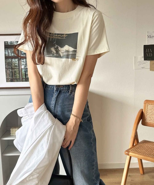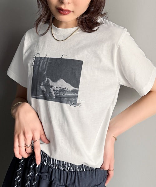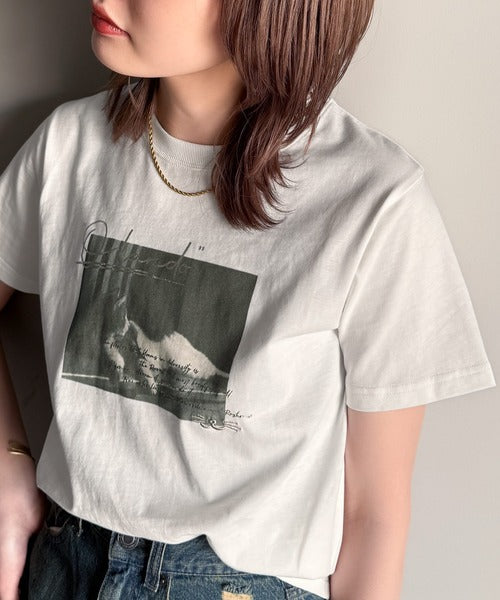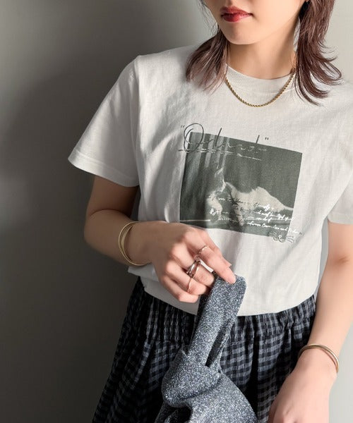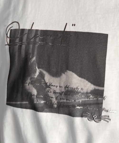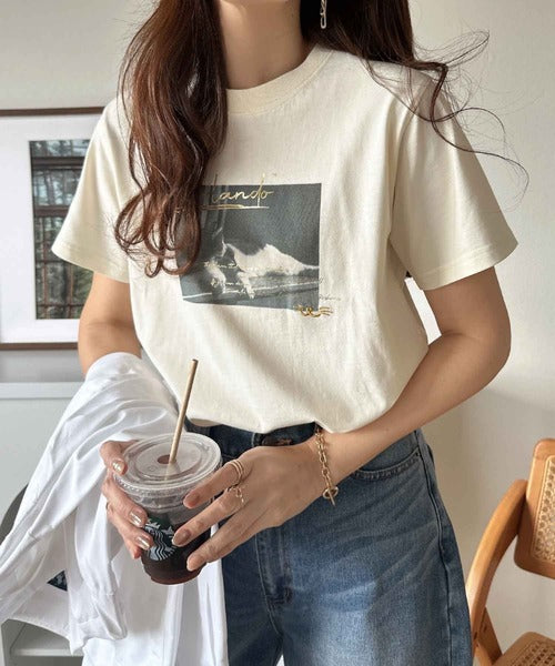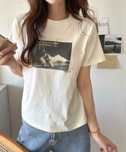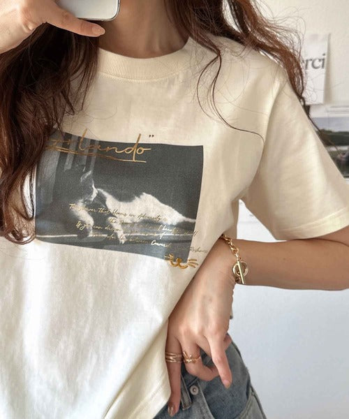 春夏にぴったりのシルケット風猫フォト箔×刺繍Tシャツ。