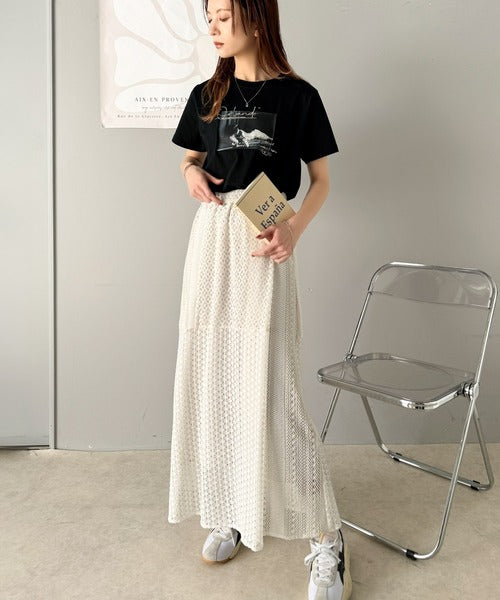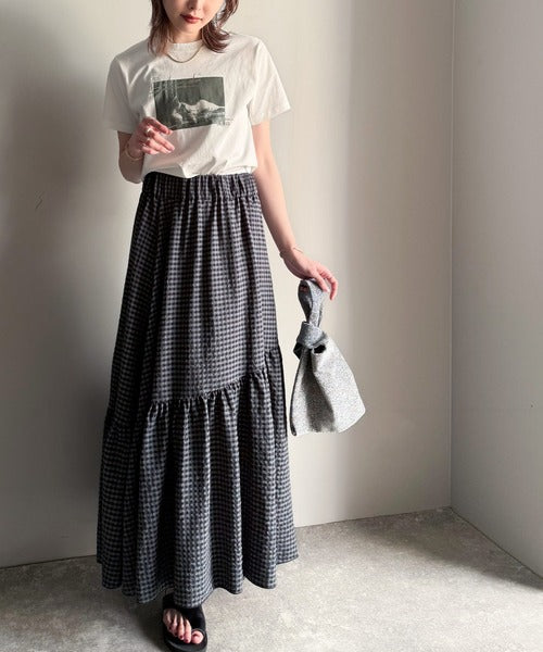 ほんのり甘めのシアースカートと組み合わせると、フェミニンな印象もプラス♪