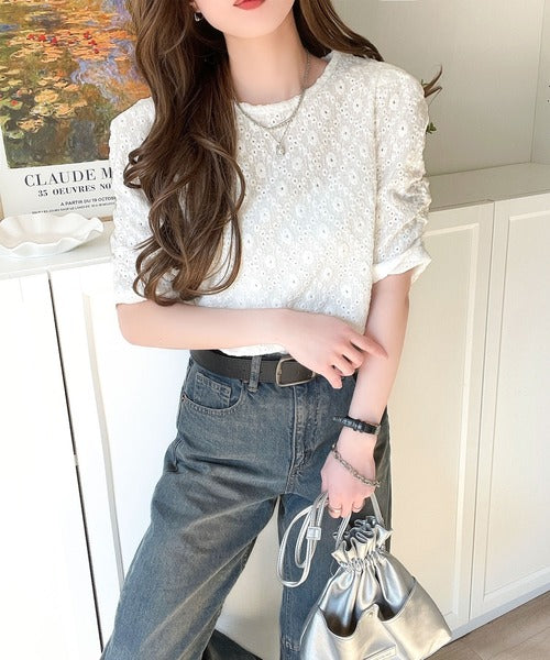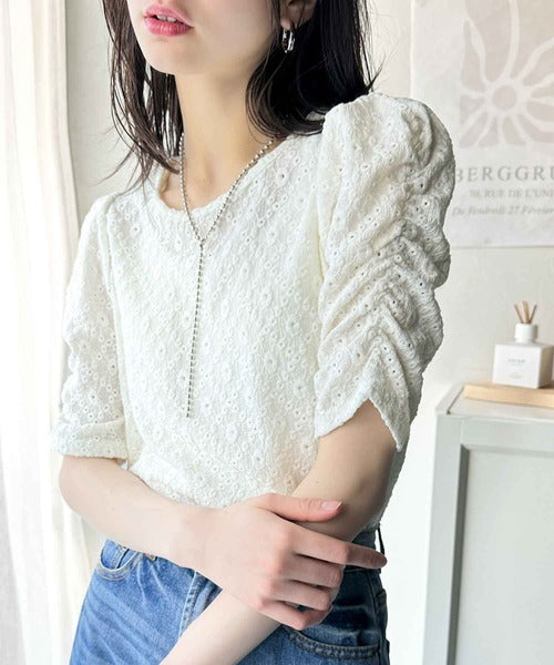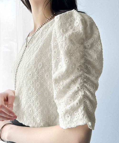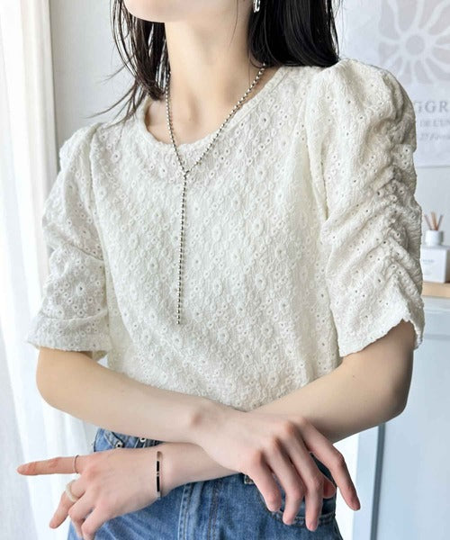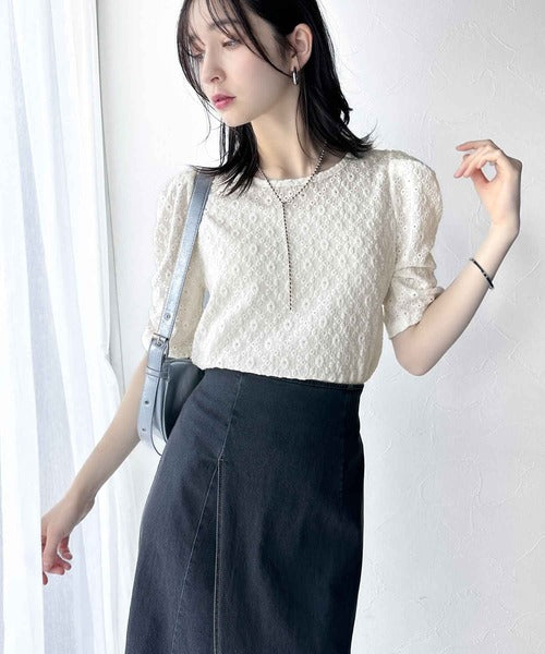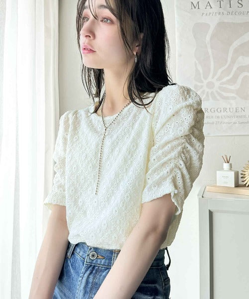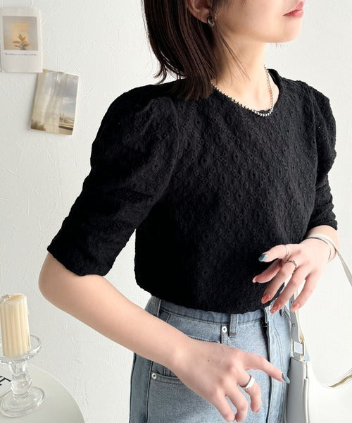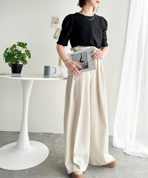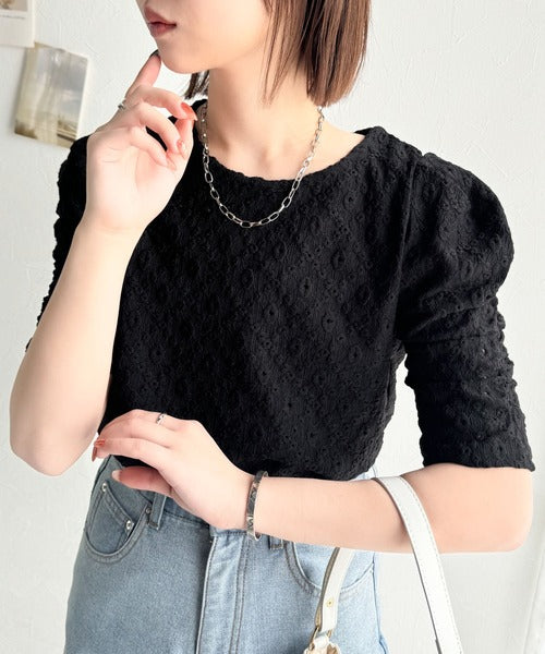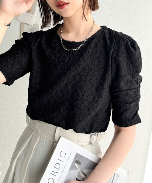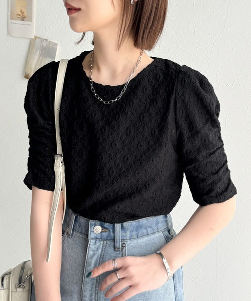 着るだけで華やかに。ふくれジャガード袖タックギャザープルオーバー(半袖) ce1330023