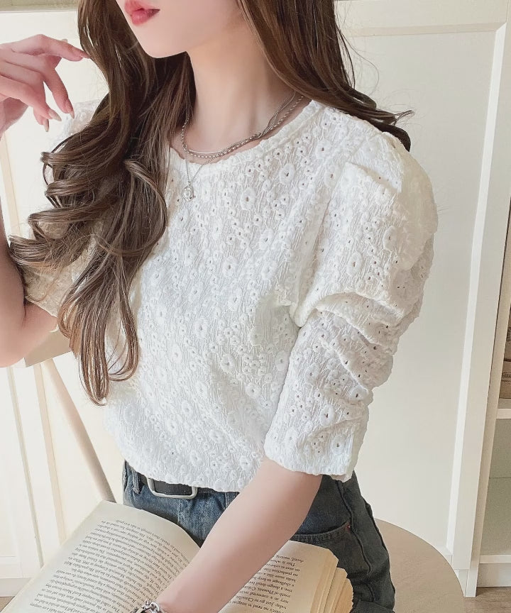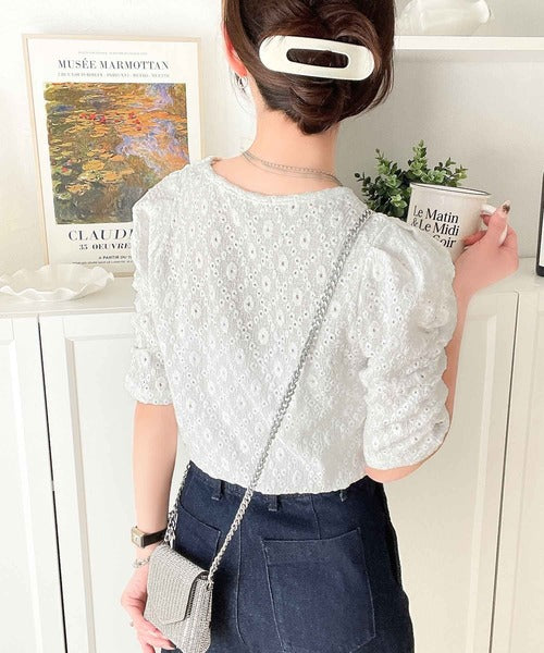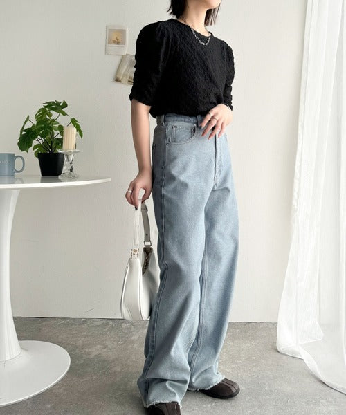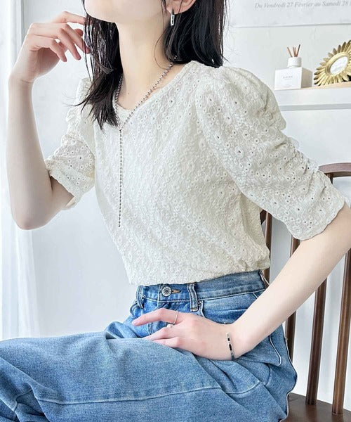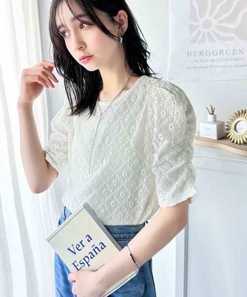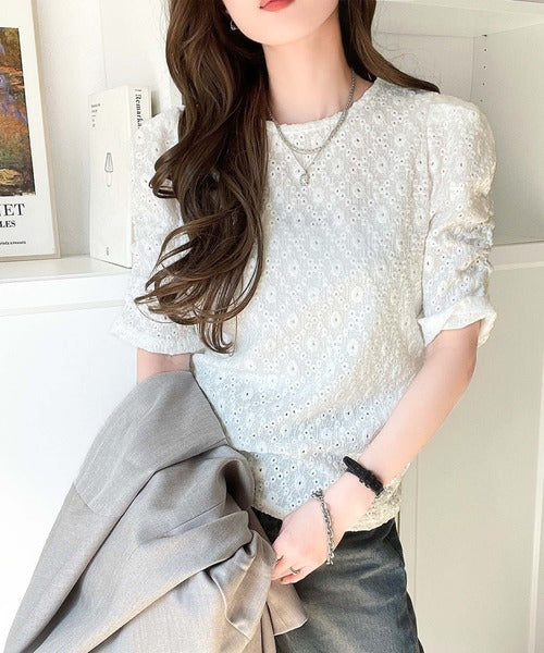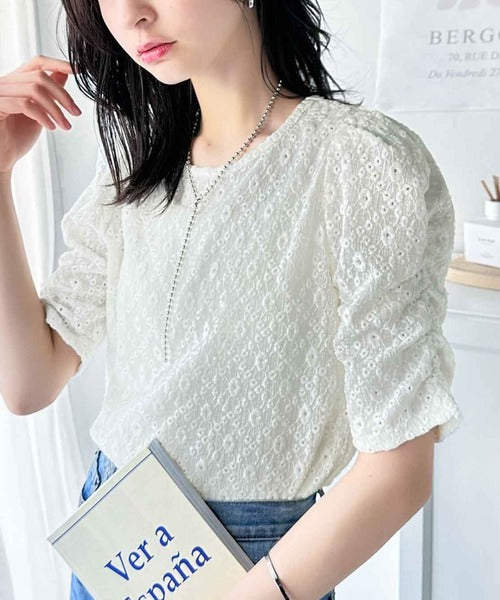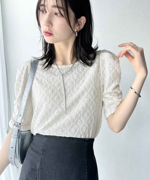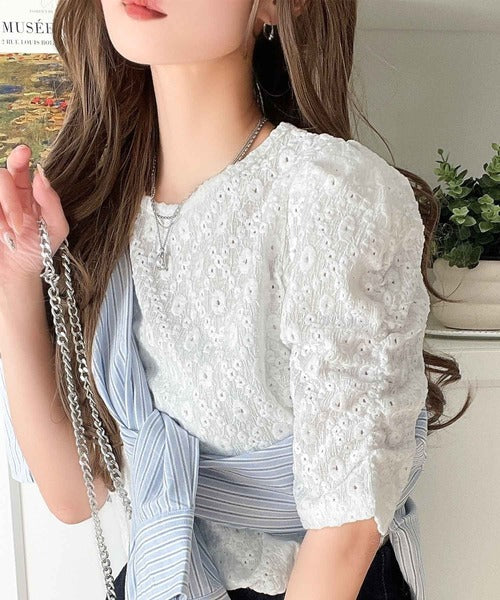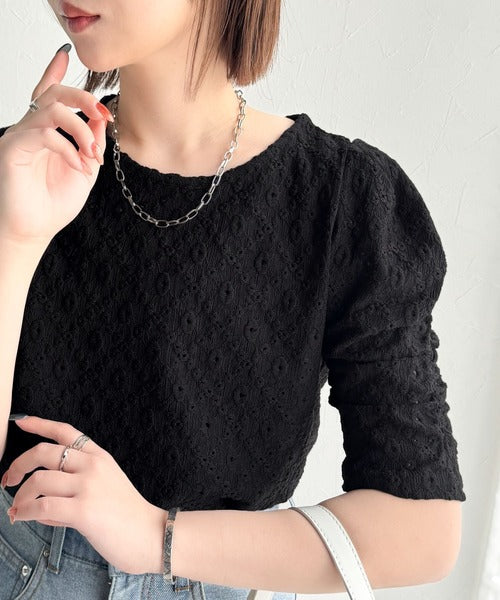 着るだけで華やかに。ふくれジャガード袖タックギャザープルオーバー(半袖) ce1330023