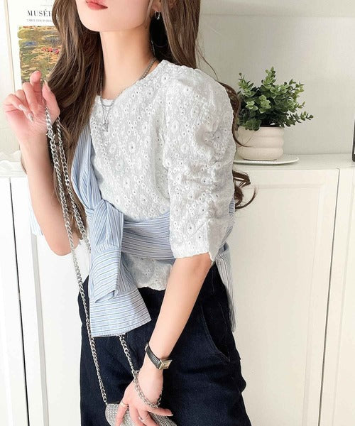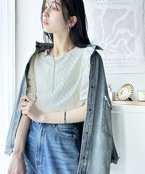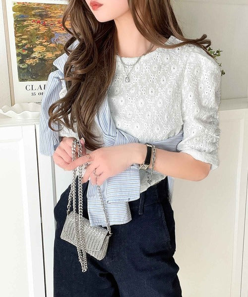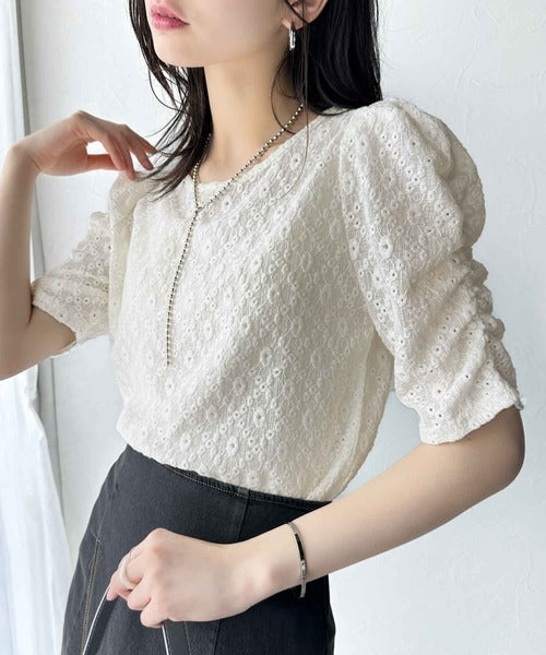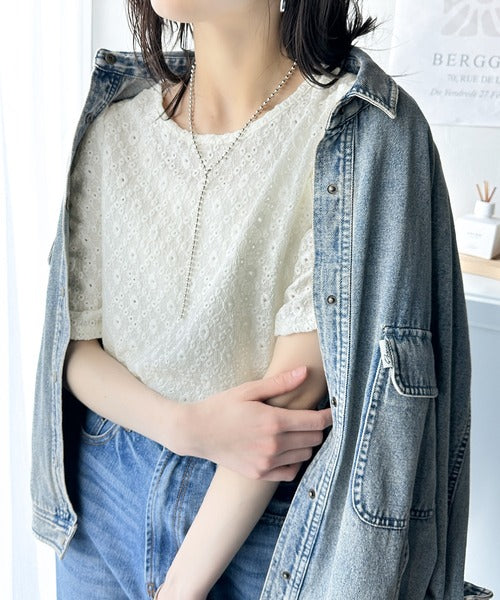 一枚で着ても存在感のあるカットソーレースブラウスですが、