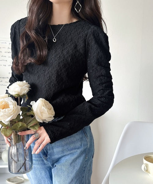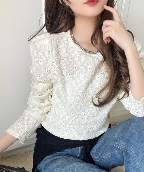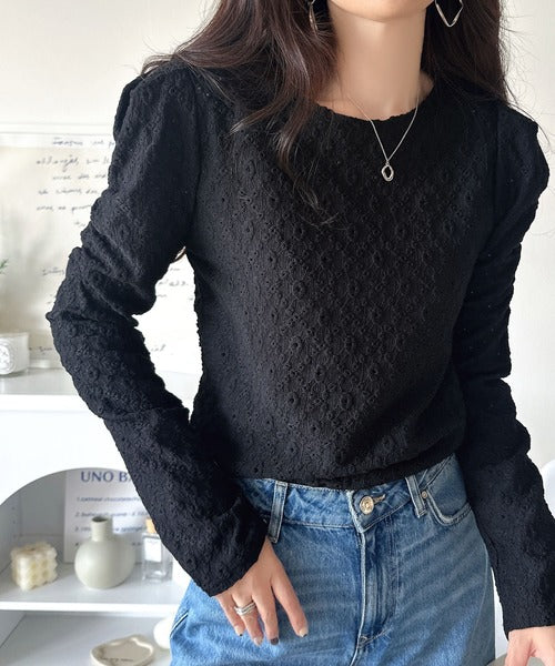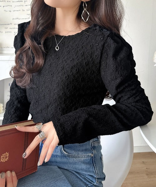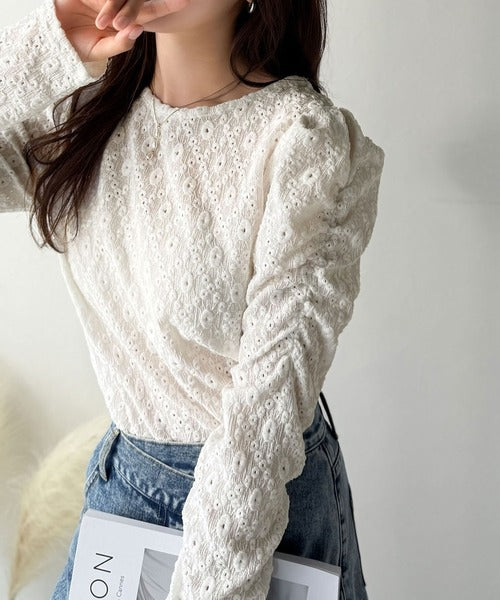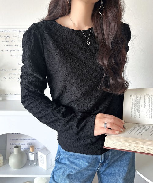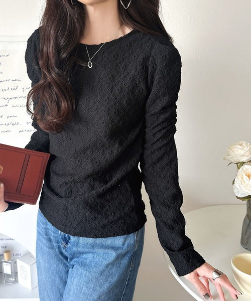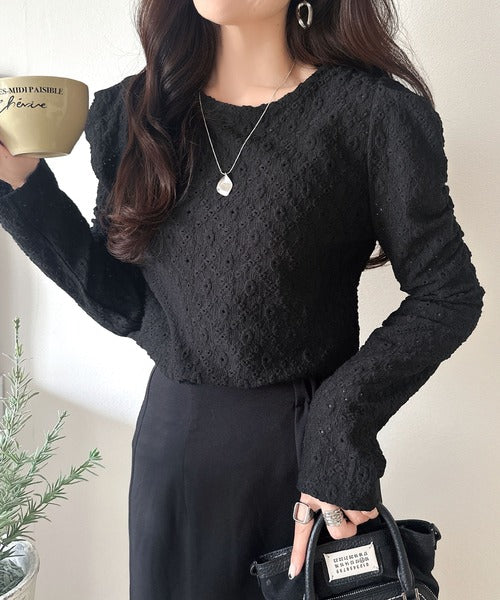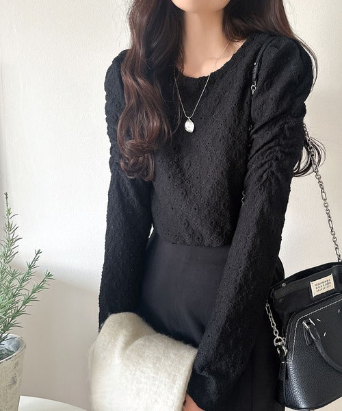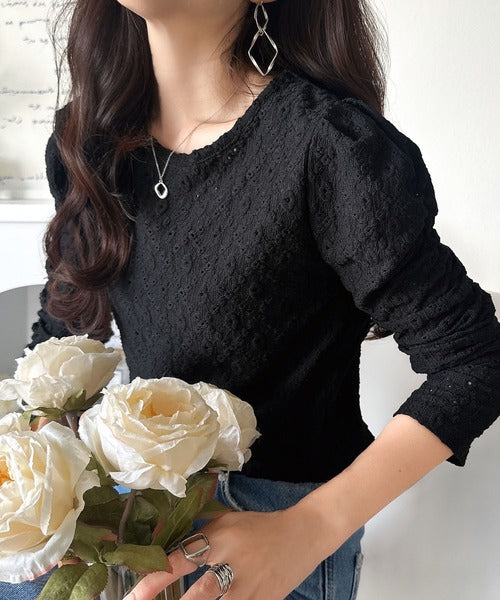1枚で華やかに。ふくれジャガード袖タックギャザープルオーバー(長袖) ce1330051