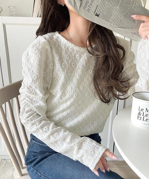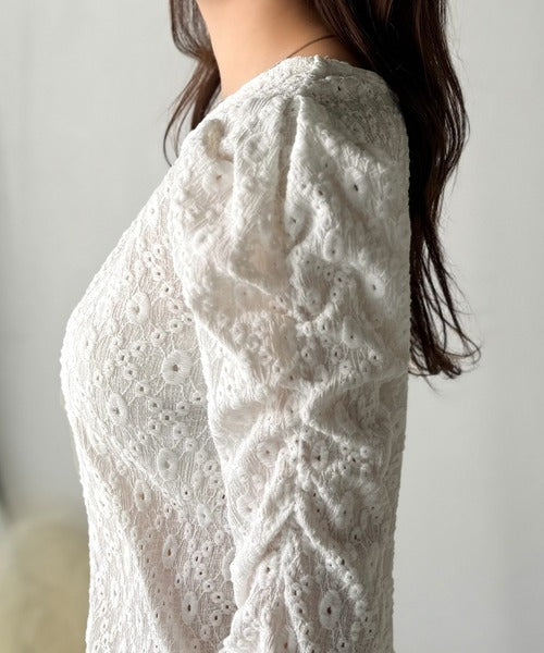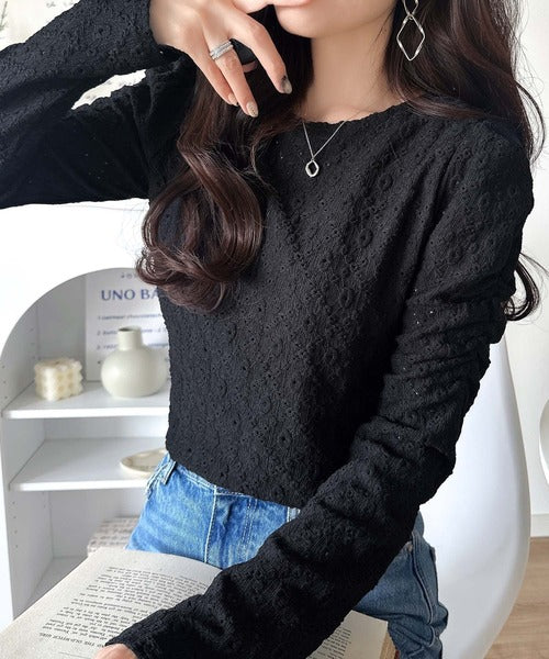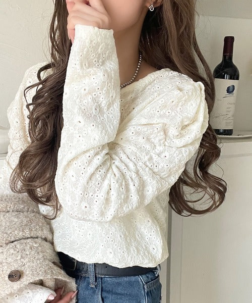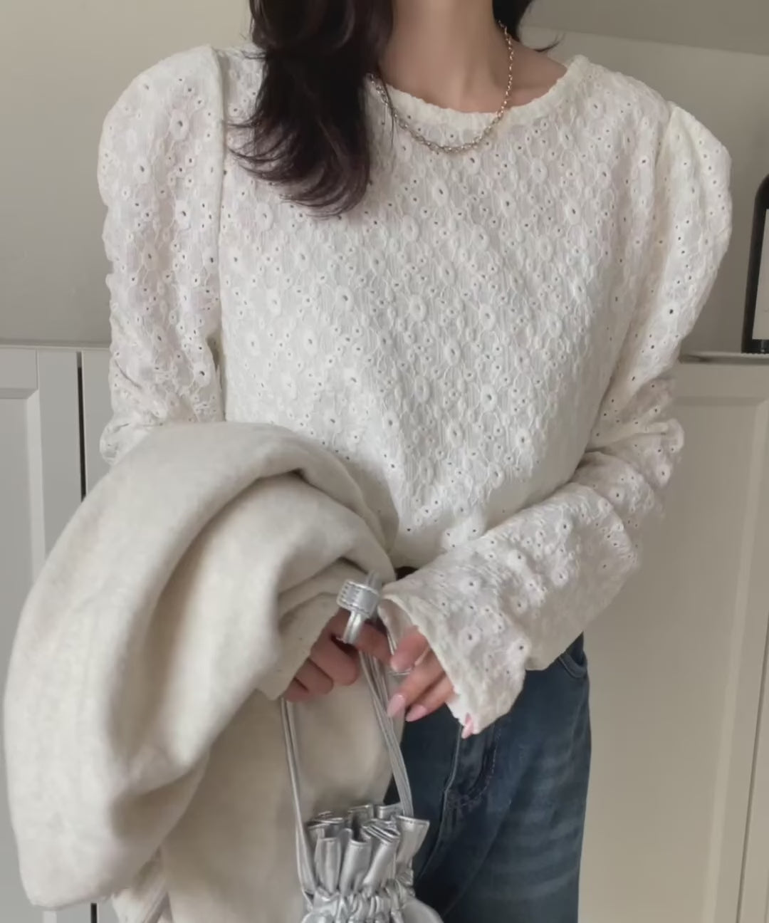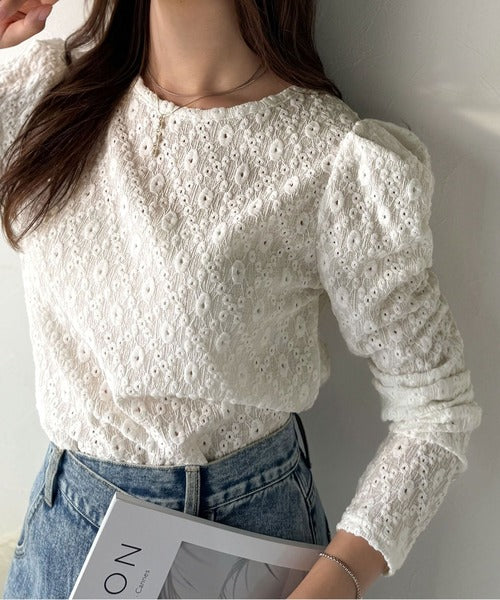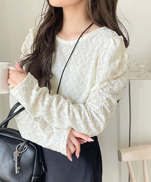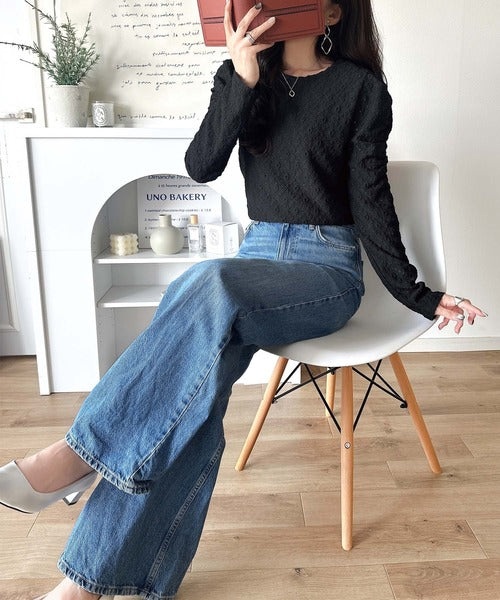 1枚で華やかに。ふくれジャガード袖タックギャザープルオーバー(長袖) ce1330051