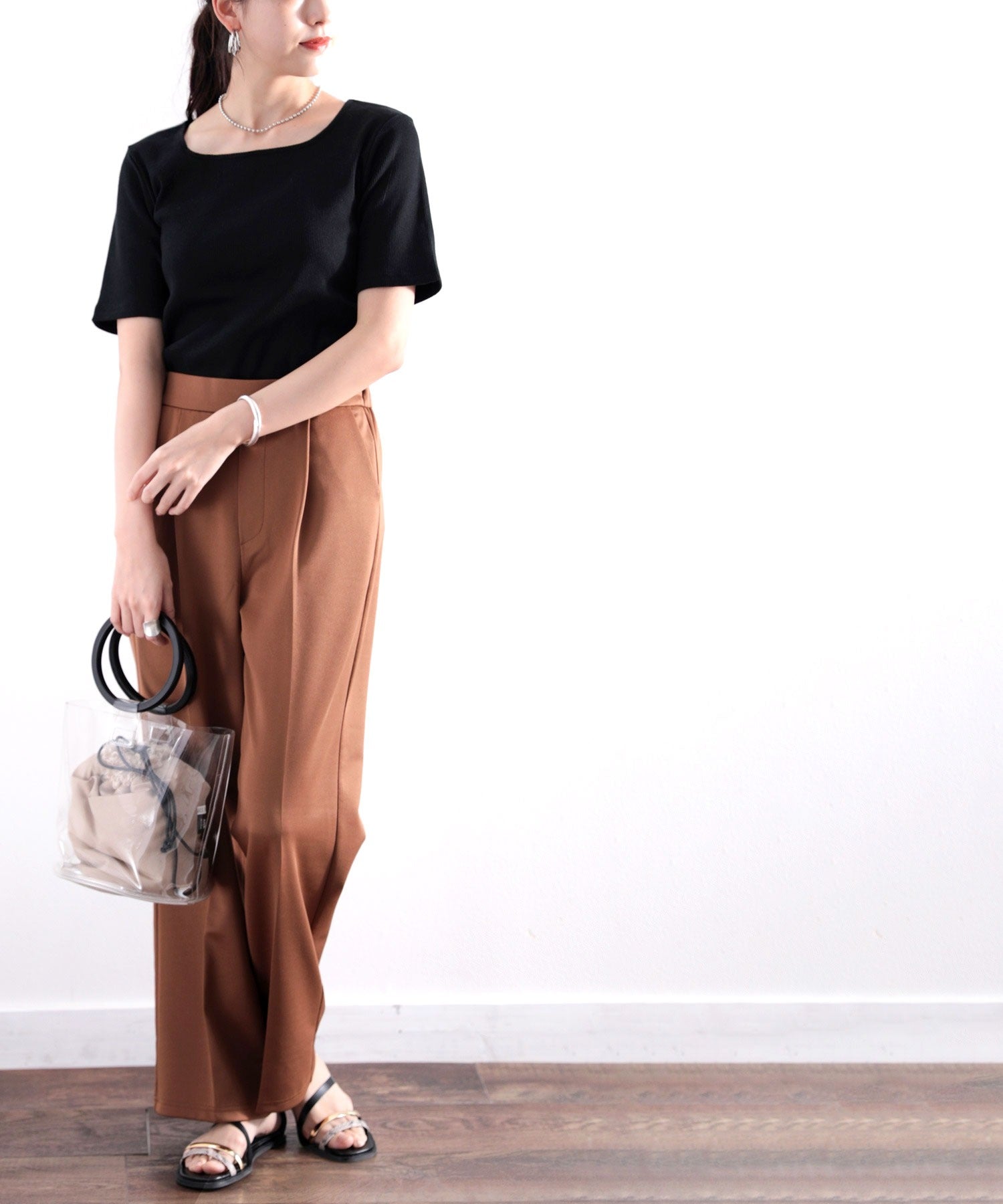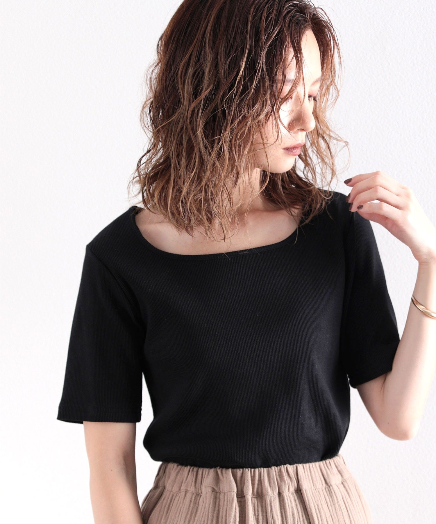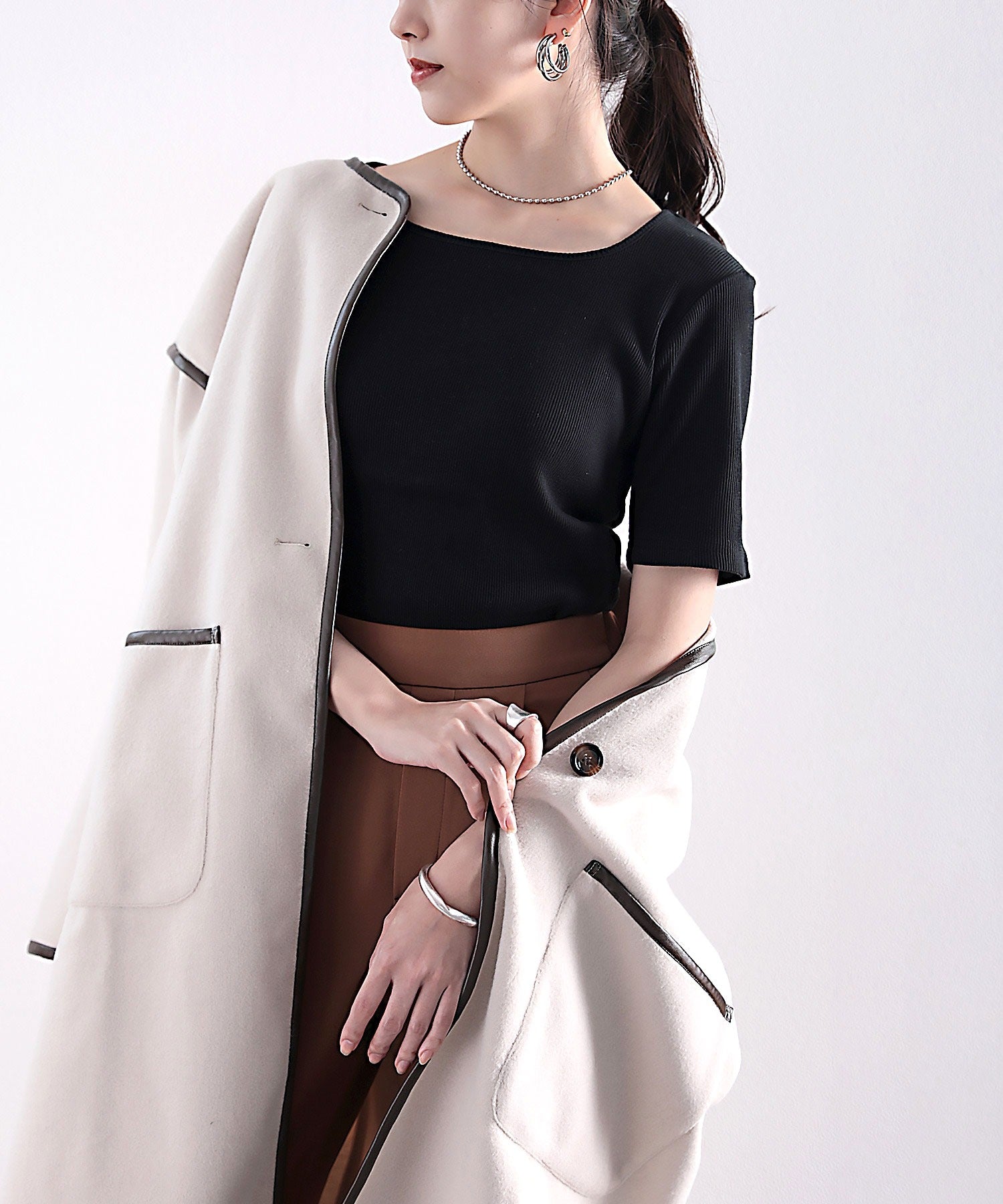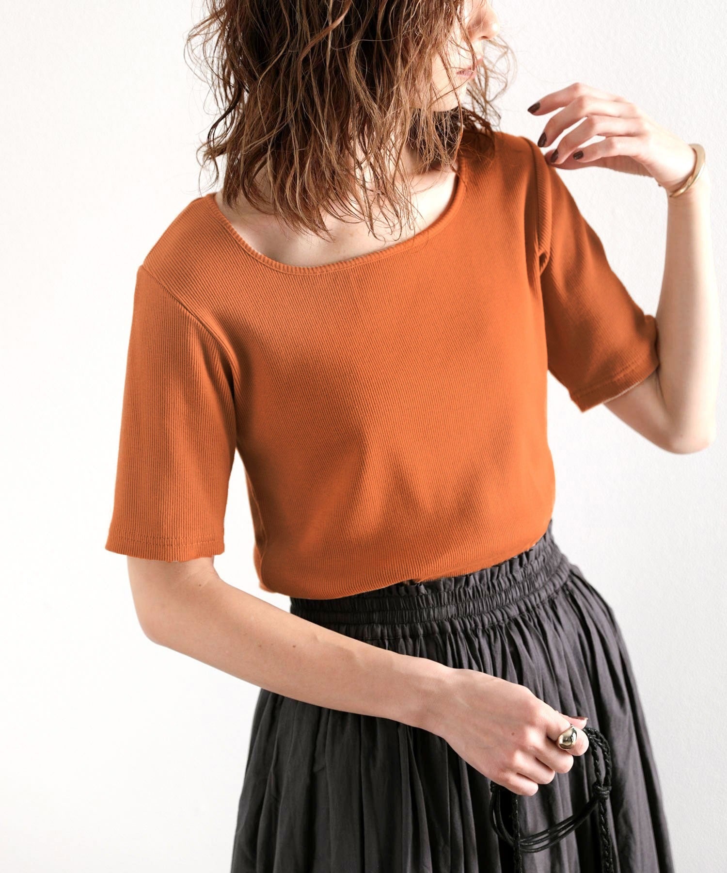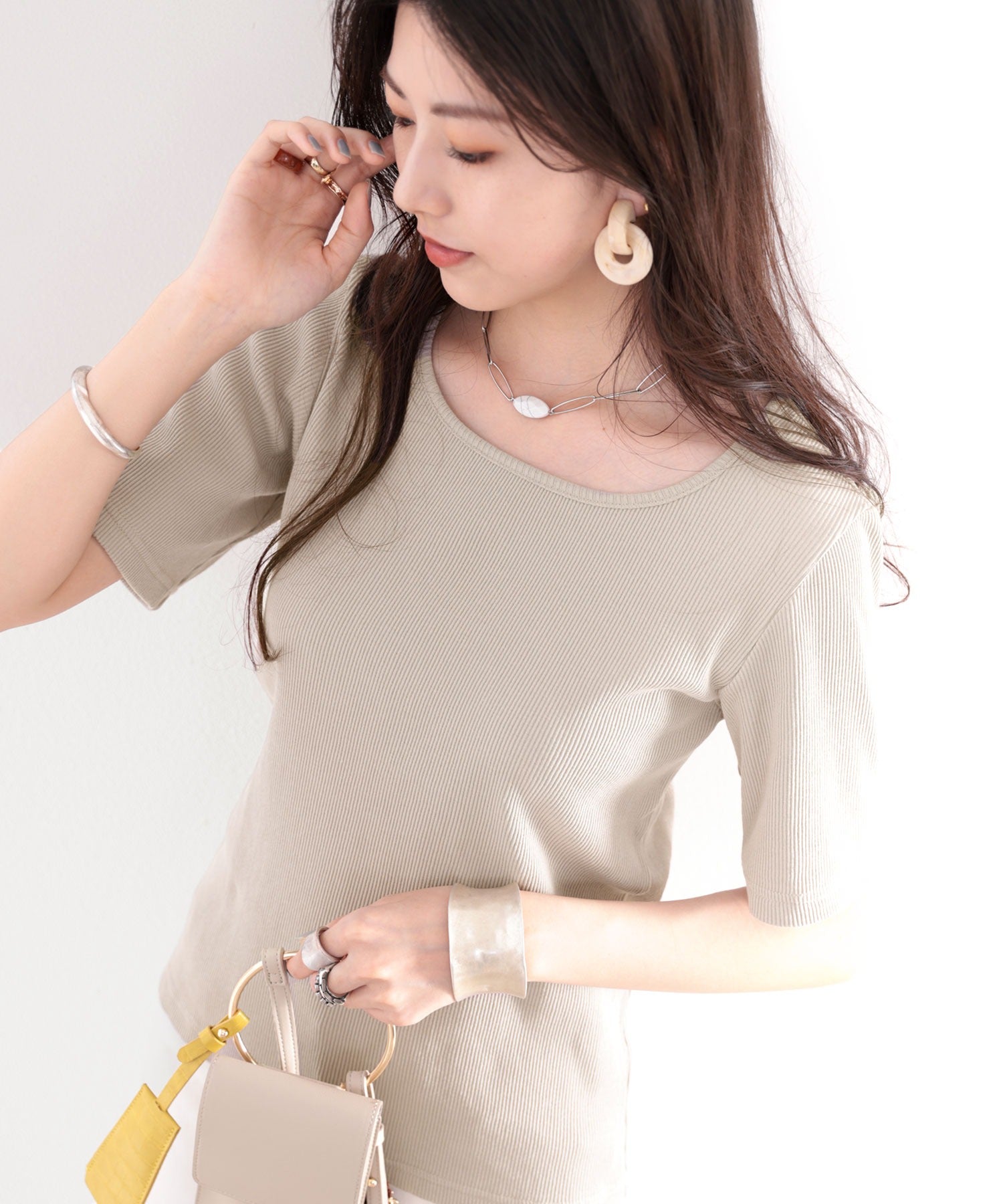 タイトめなシルエットに細いリブで、細見え効果も◎
