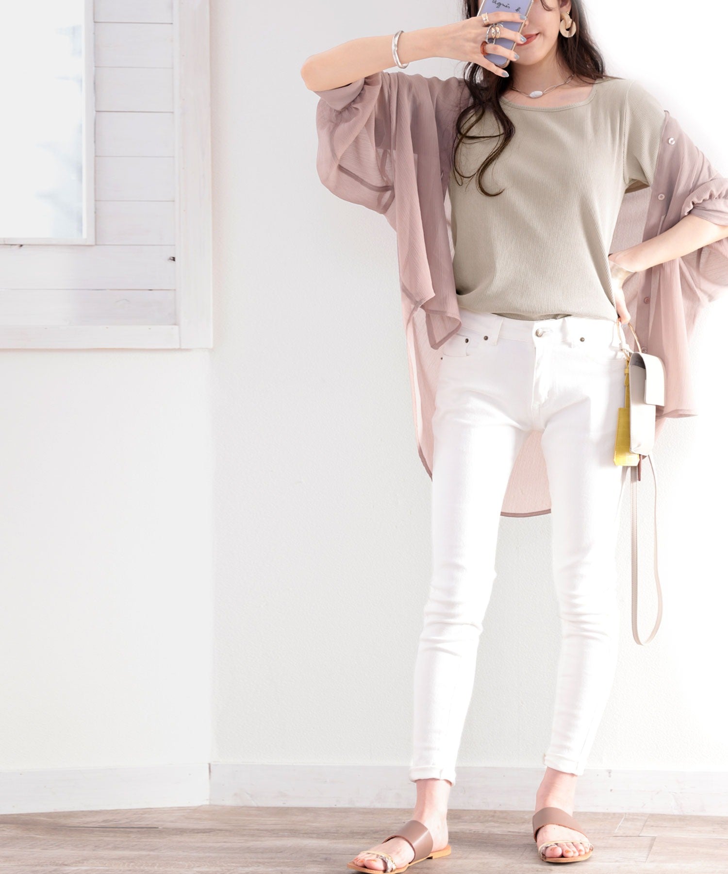 インに着ても抜け感を生み出し、自然とフェミニンな印象をプラス。
