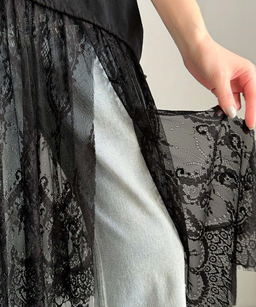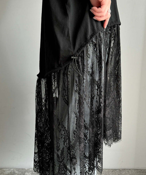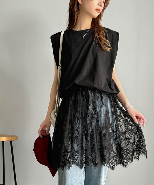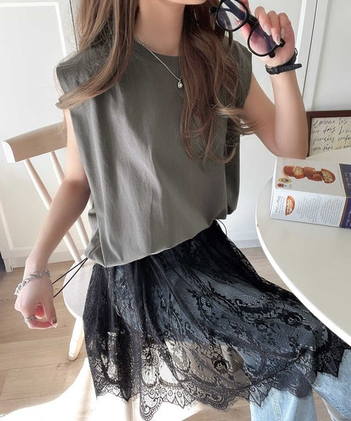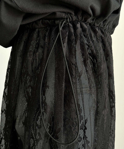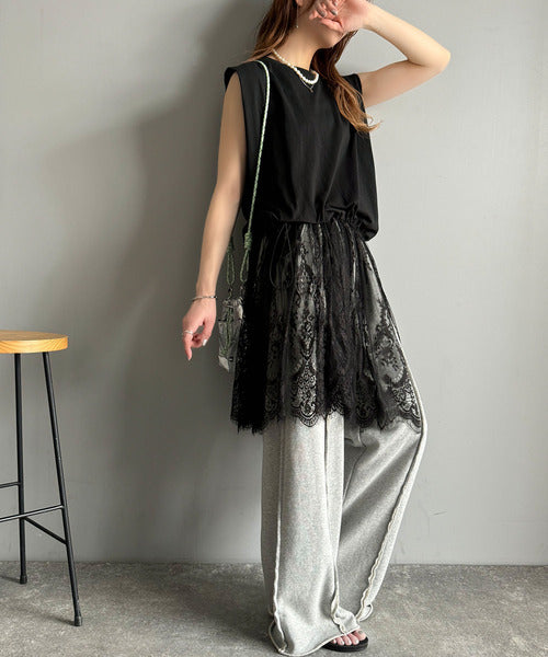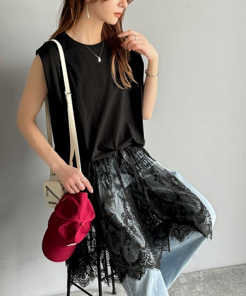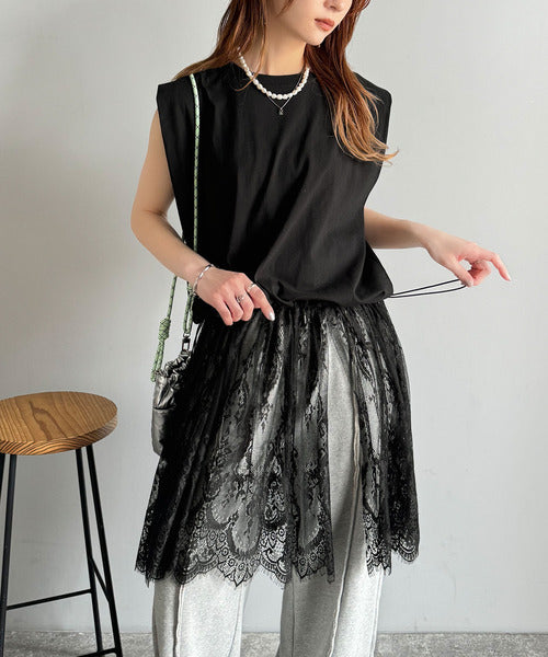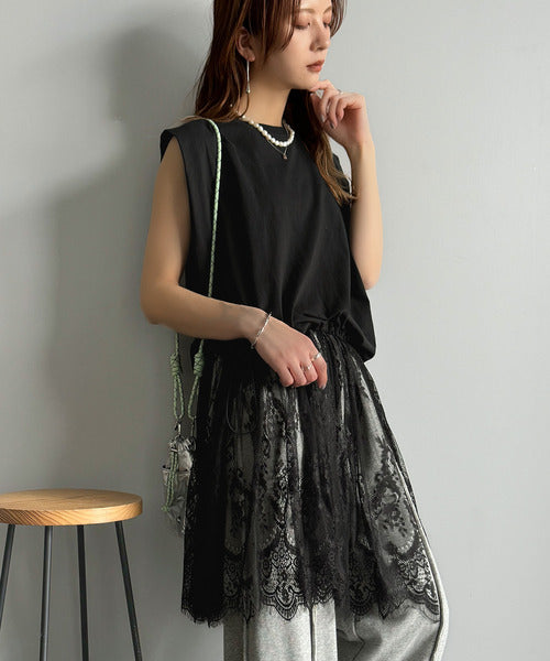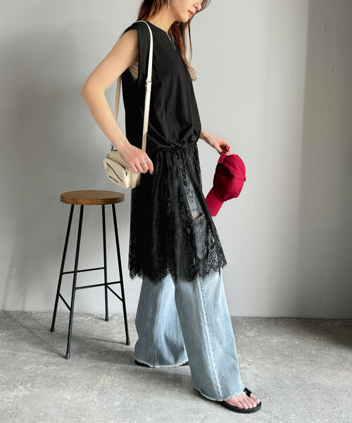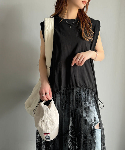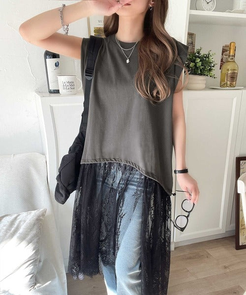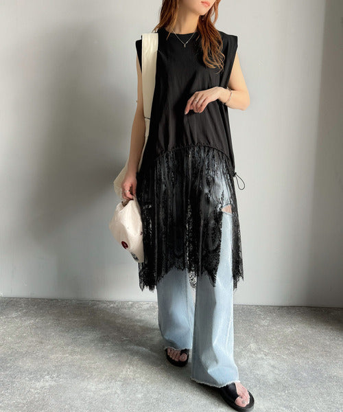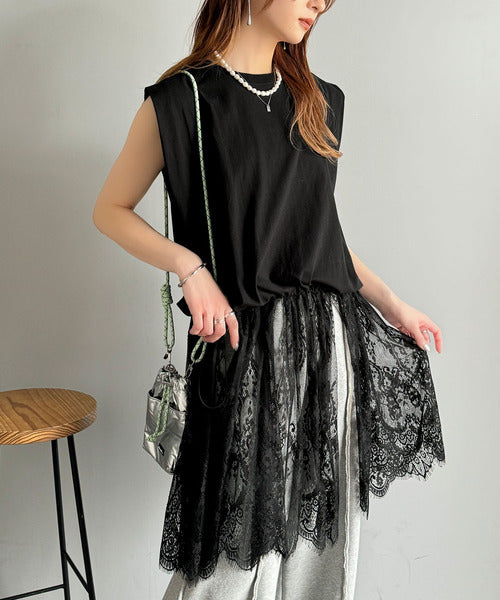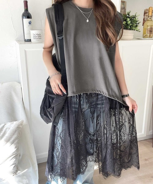 《JaVaジャバコラボ》1枚で旬な着こなし♪レースコンビチュニックTシャツワンピース jv1260327