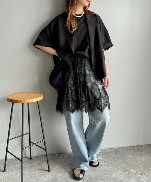 シアーシャツやジレを羽織れば、洗練された印象をプラスできますよ◎