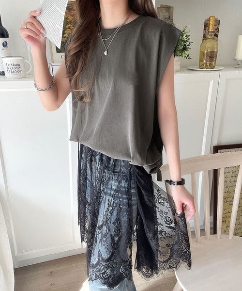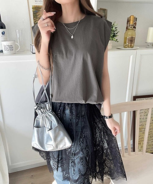 高級感あふれるレイヤード風のチュニックTシャツ。