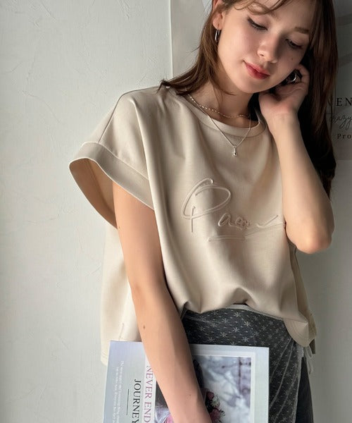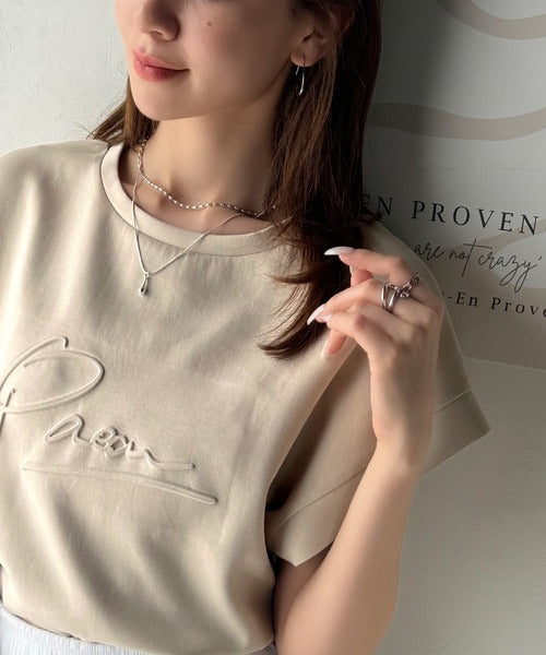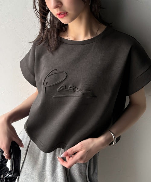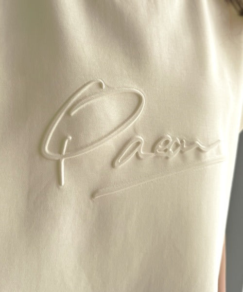 フロントにエンボス加工のロゴデザインが施されたトレンド感満載のTシャツ♪