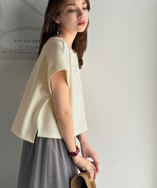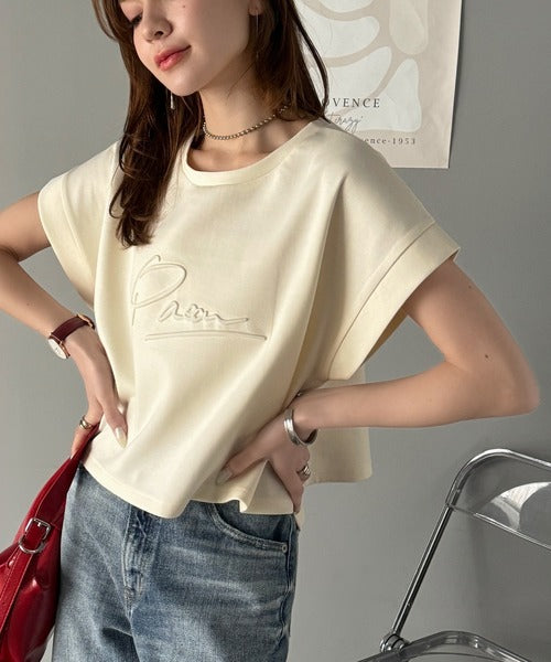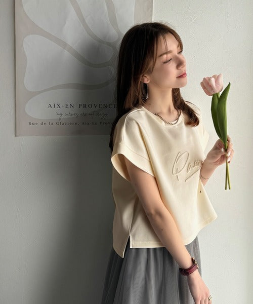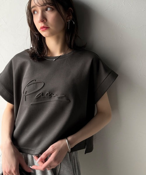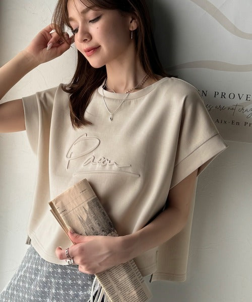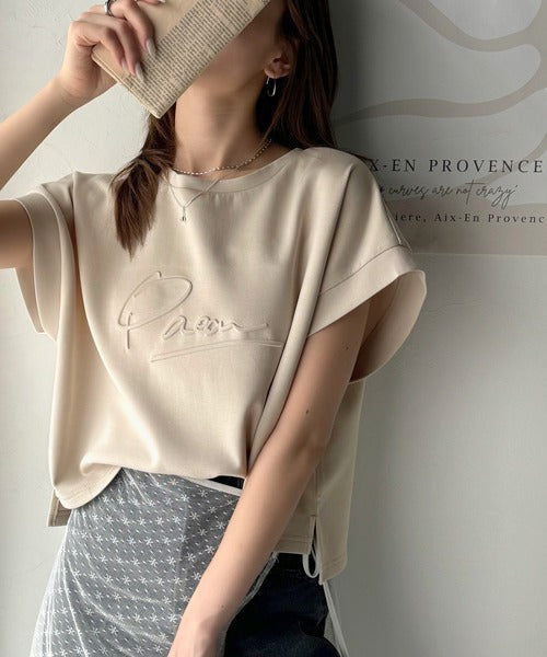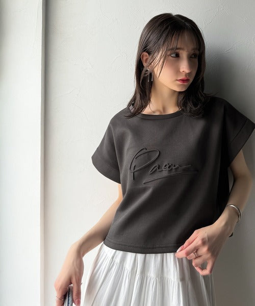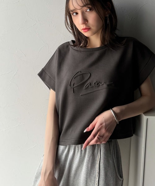 《JaVaジャバコラボ》上品な大人の抜け感。フロントPAEANエンボス加工半袖Tシャツ(ロゴ) jv1260427
