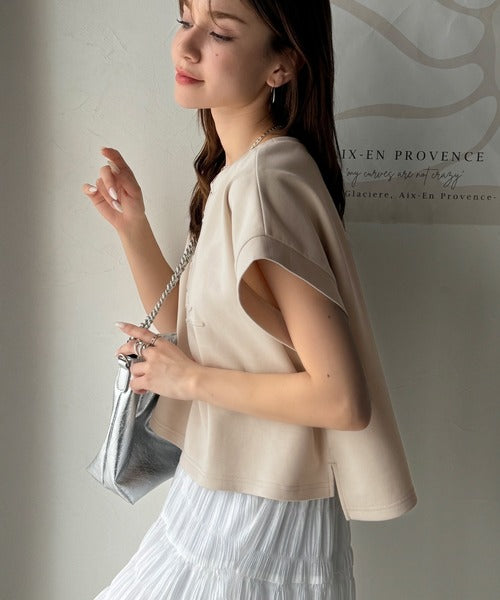 広めに開いたフレンチスリーブが、二の腕の華奢見せ効果も絶大!