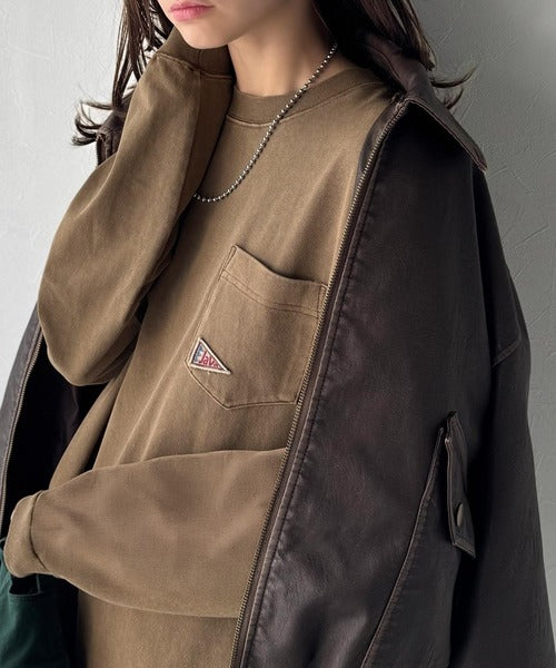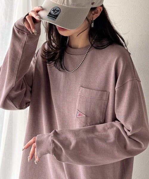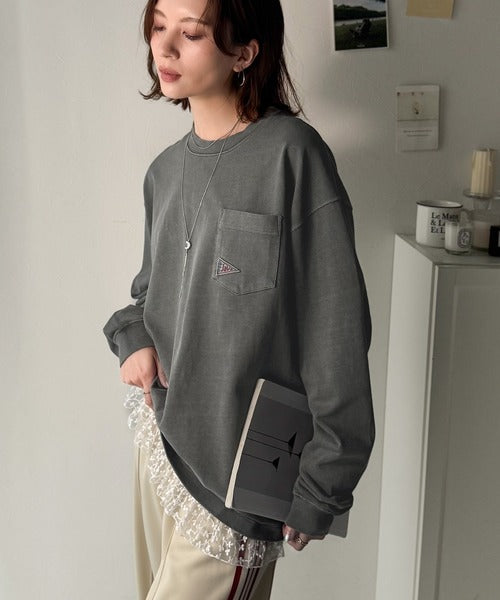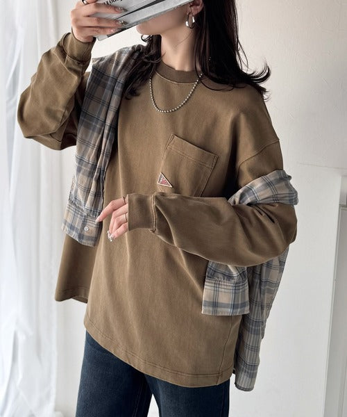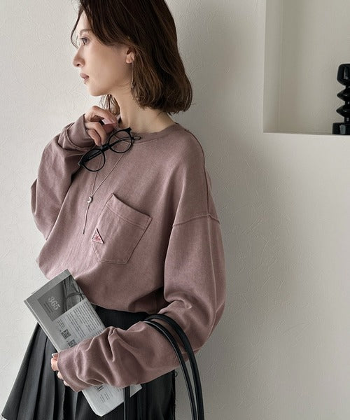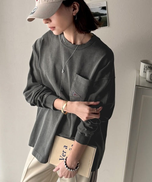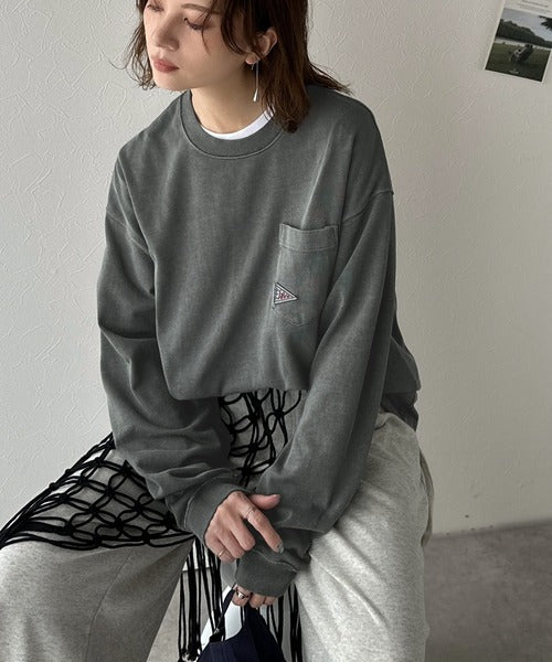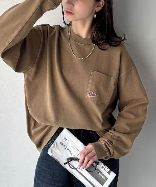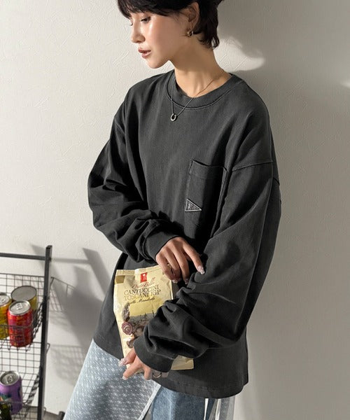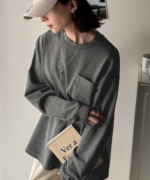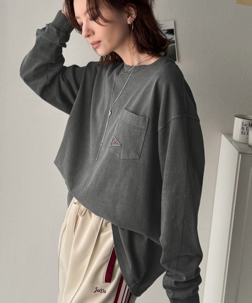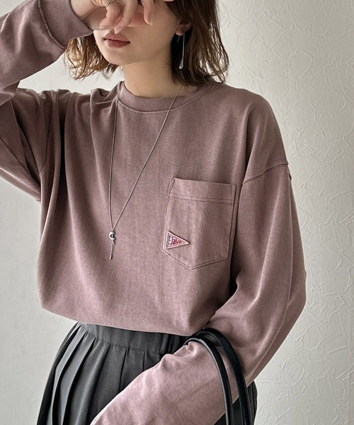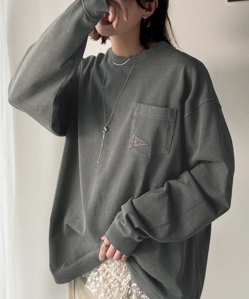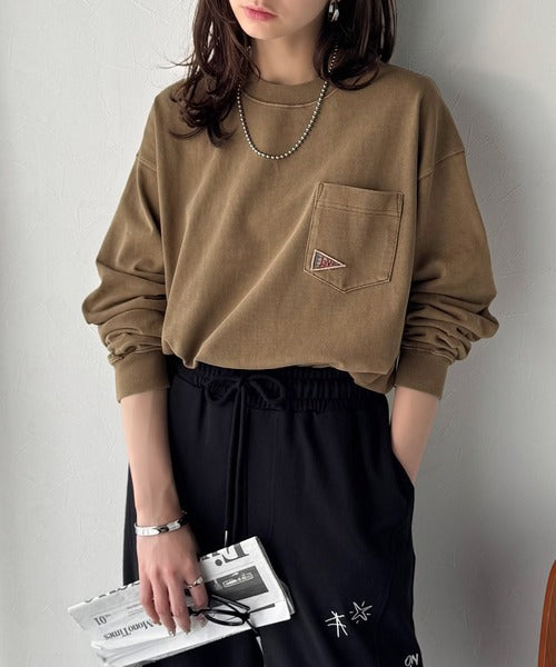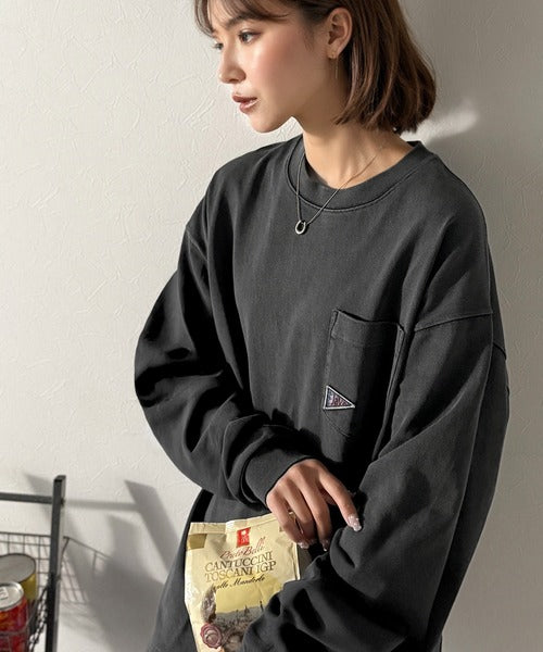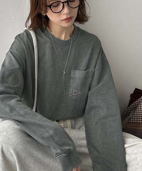 《JaVa ジャバコラボ》ラフに着映える。ピグメント加工胸元刺繍ワッペンヘビーウェイトポケットロンT(長袖) jv1260517
