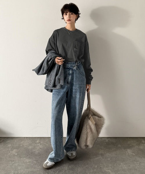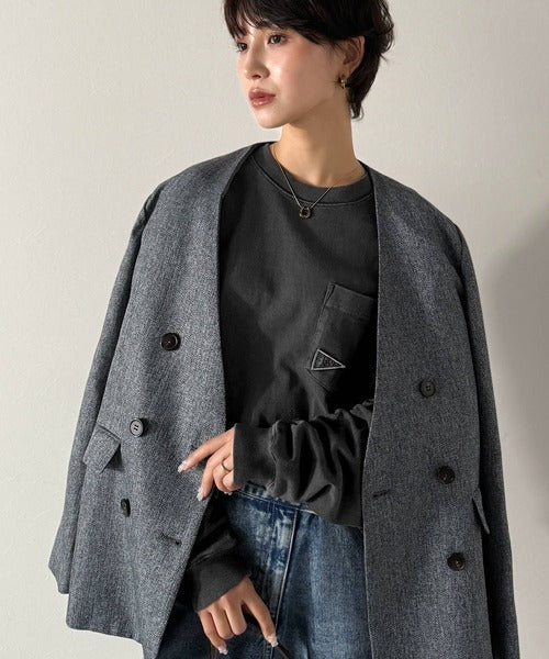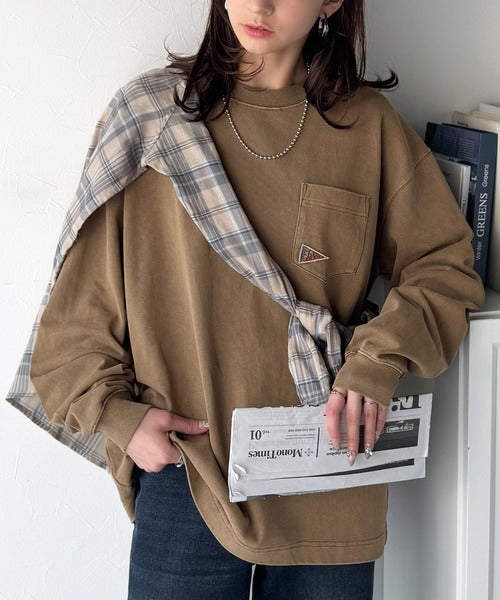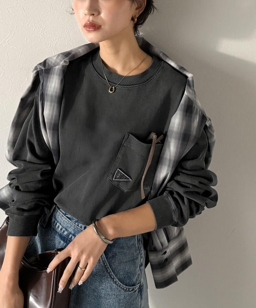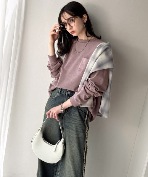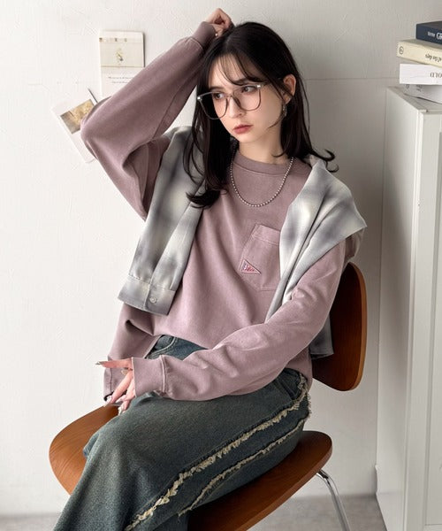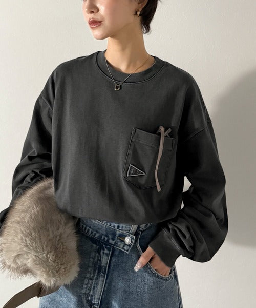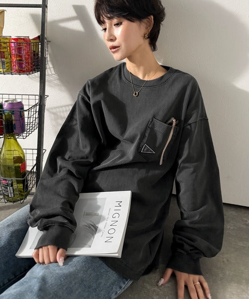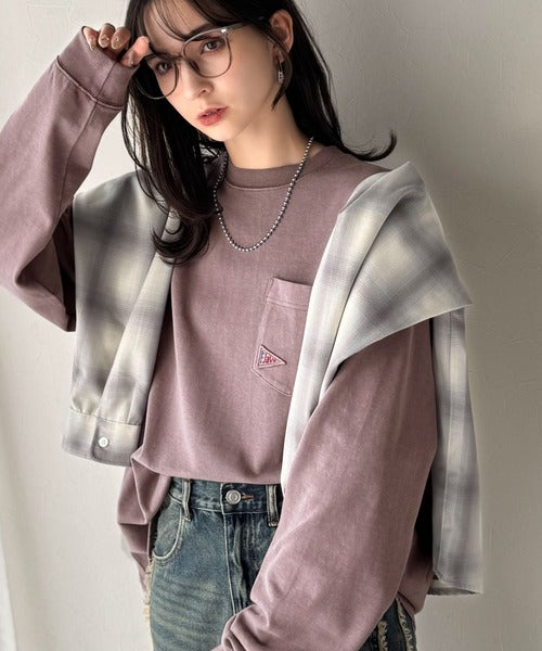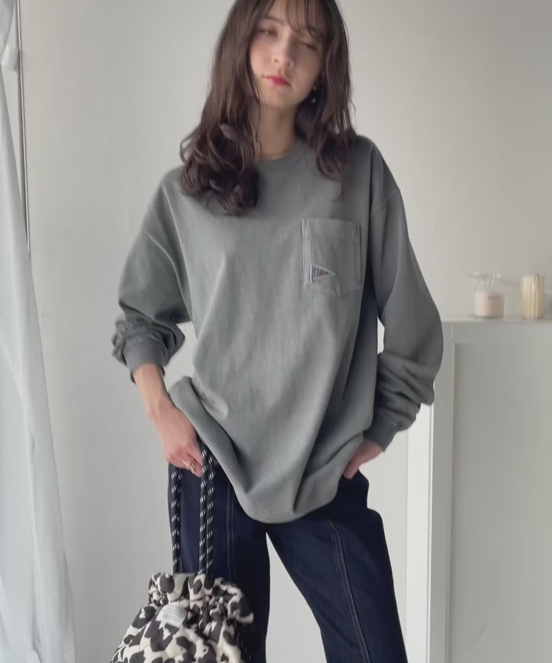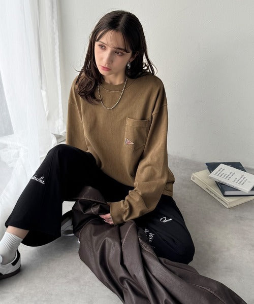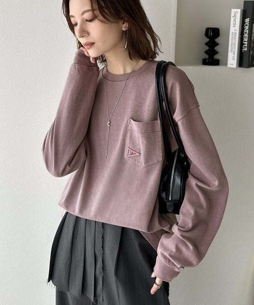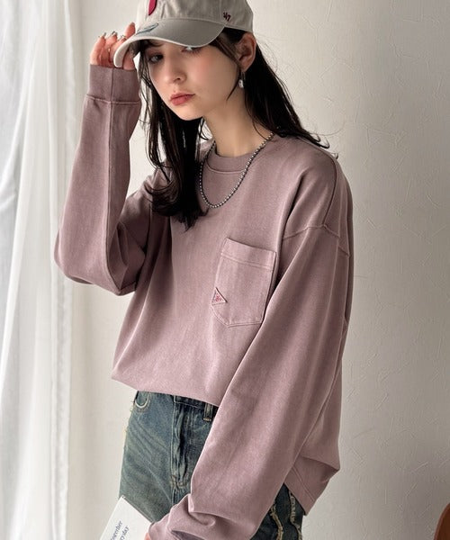 《JaVa ジャバコラボ》ラフに着映える。ピグメント加工胸元刺繍ワッペンヘビーウェイトポケットロンT(長袖) jv1260517