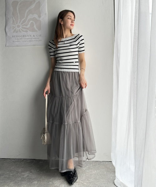 チュールスカートやキャミワンピースを合わせた甘めスタイルまで