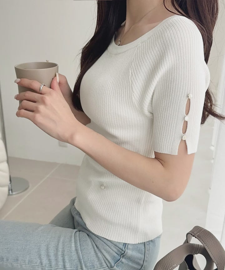 【mily bilet】大人可愛い抜け感!袖開きボタンサマーニット(半袖) mi1029117