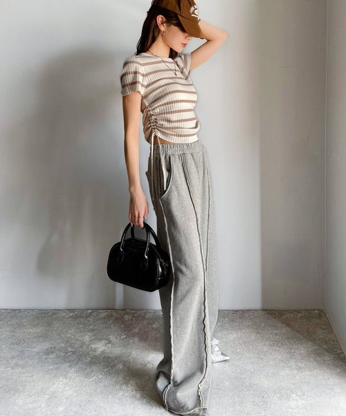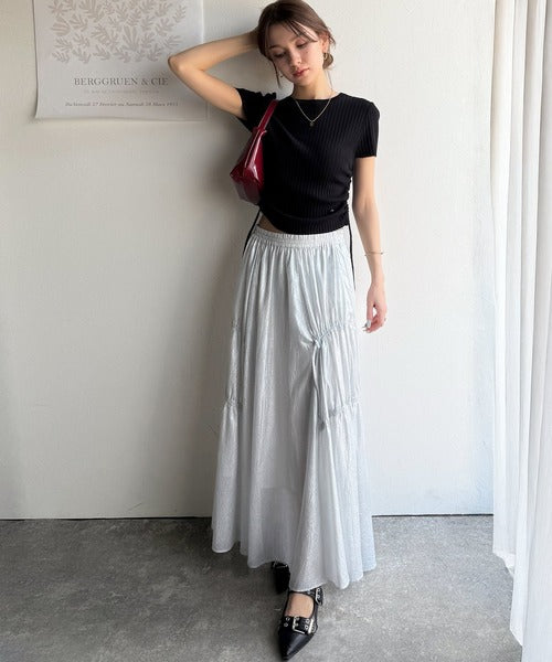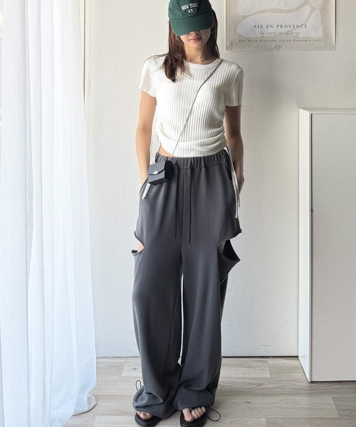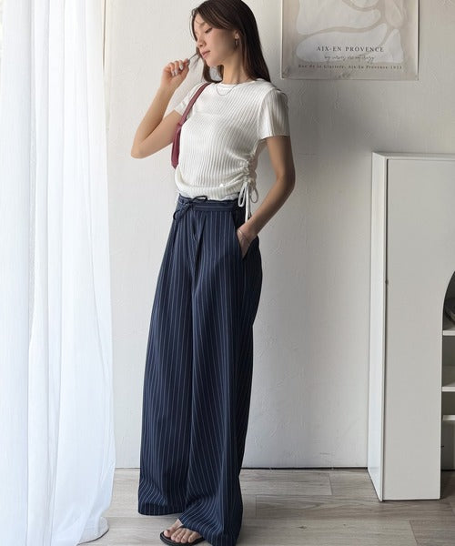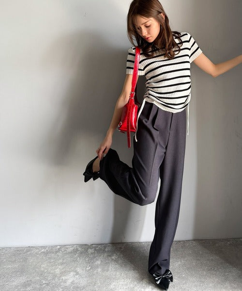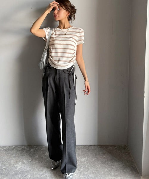 両脇のドロストリボンを引き上げればハイウェストでスタイルアップ!