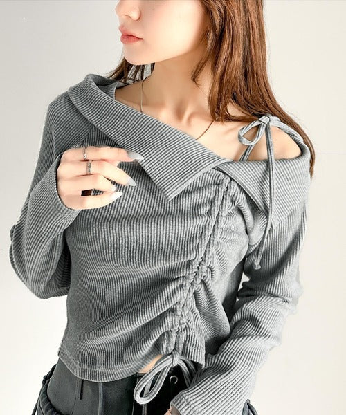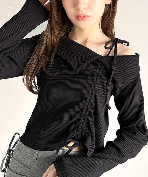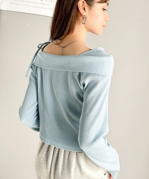 肩リボンが魅力的な、大人カジュアルトップスマルチウェイトップスの登場です。