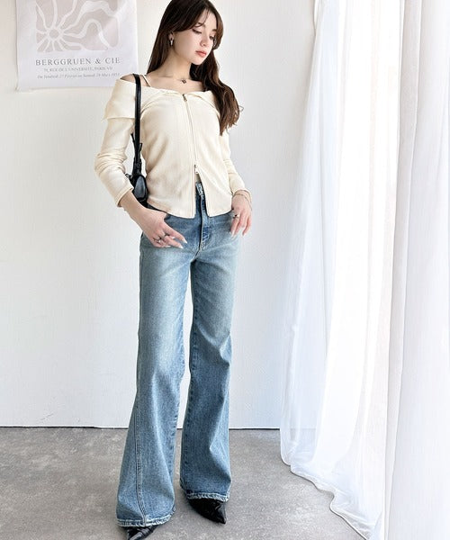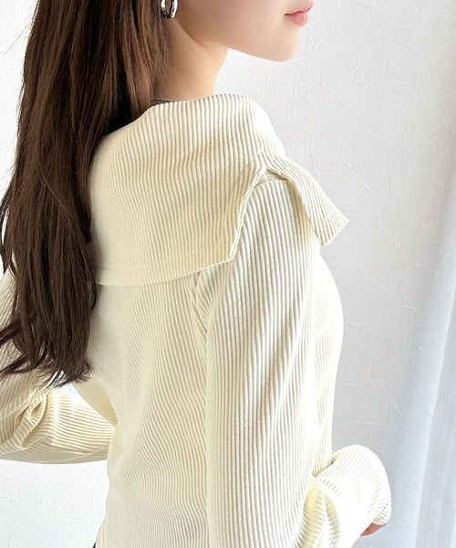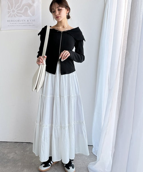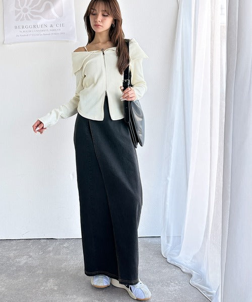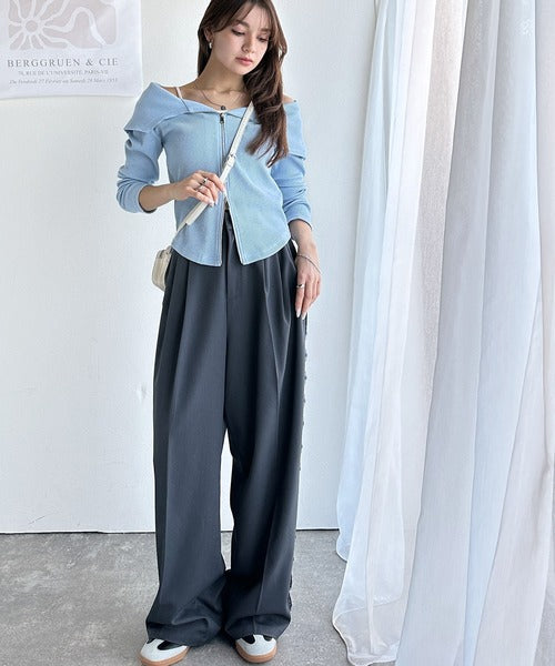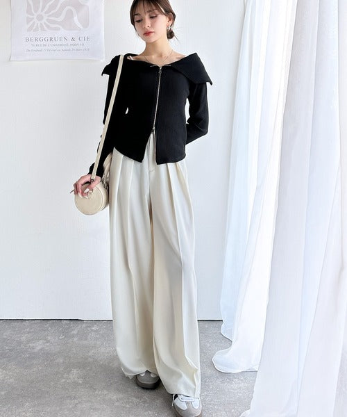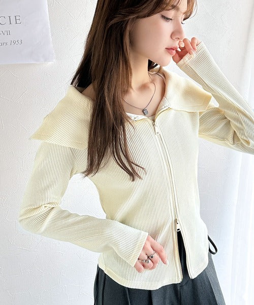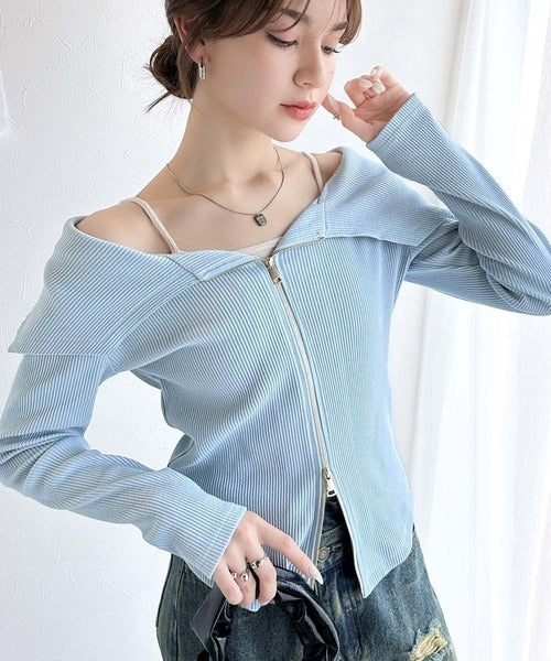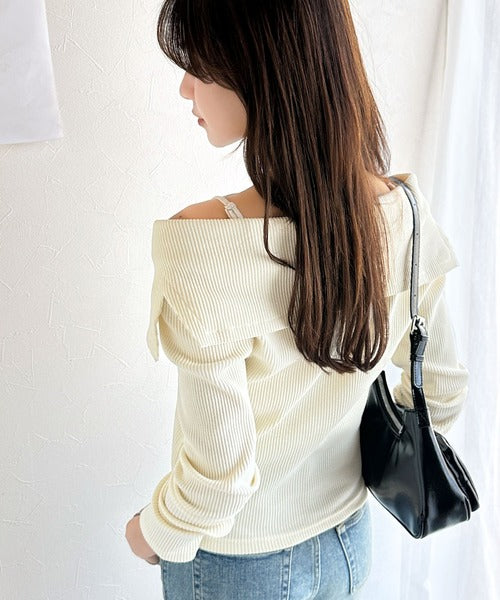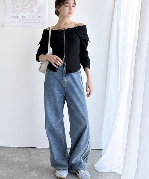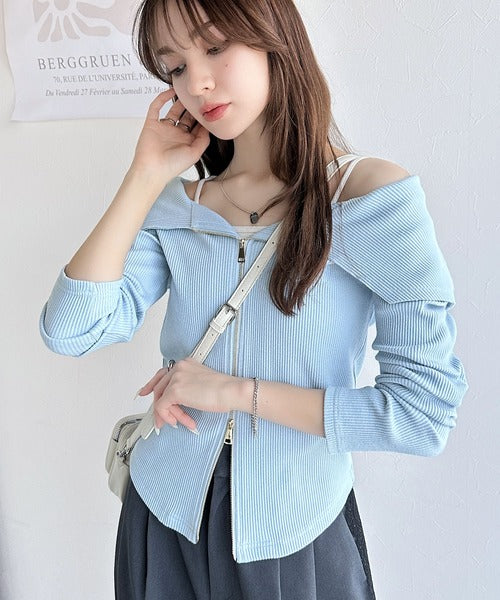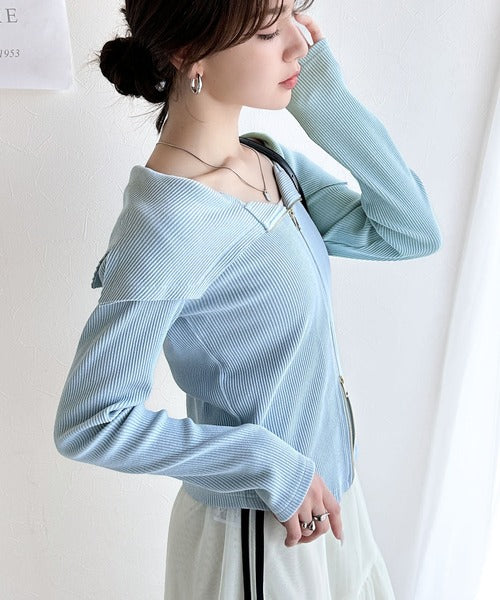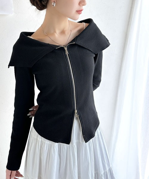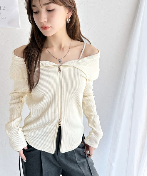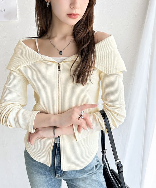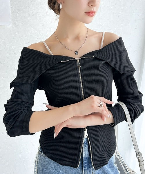 【mily bilet】トレンドの韓国風。高見えダブルジップオフショルカットソー(長袖) mi1329019