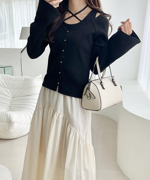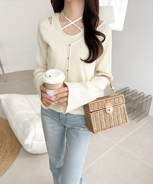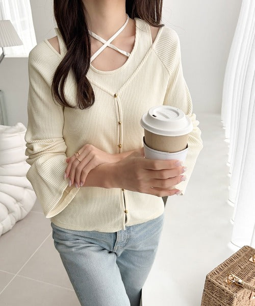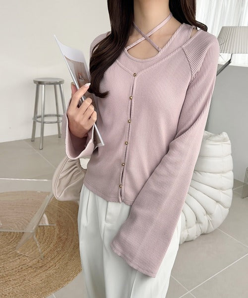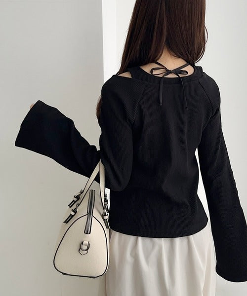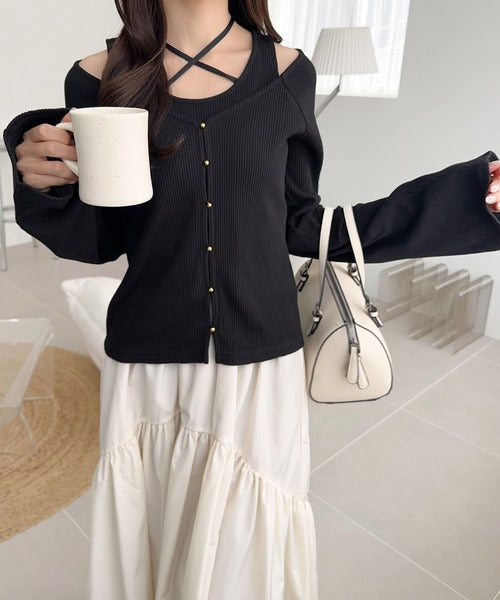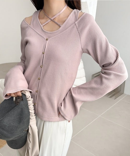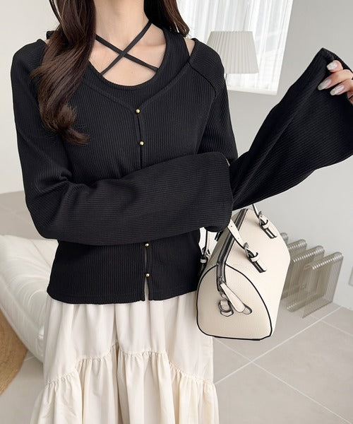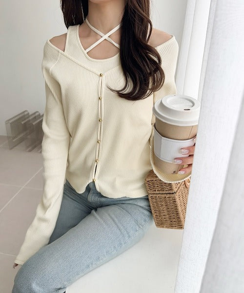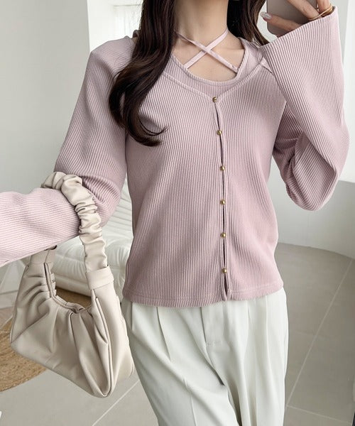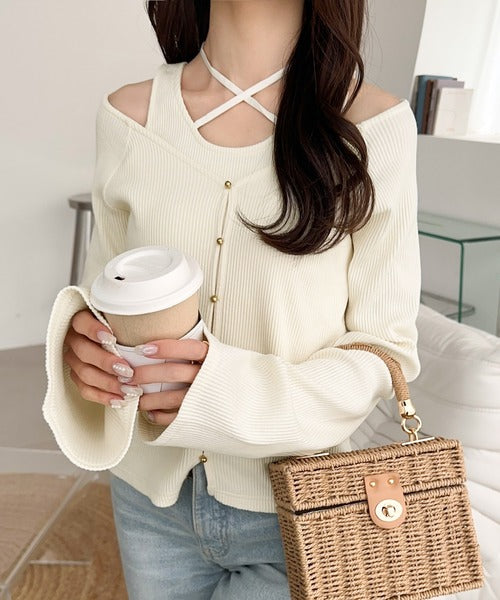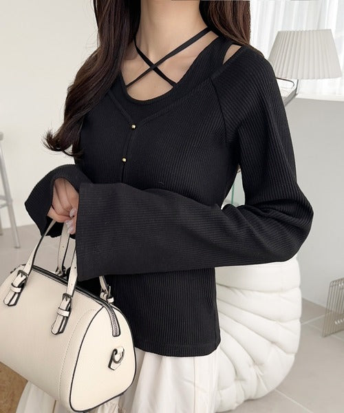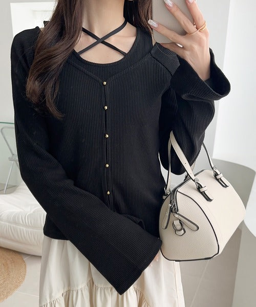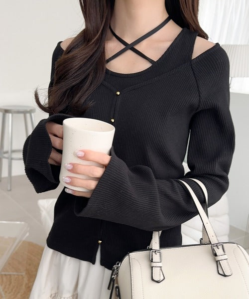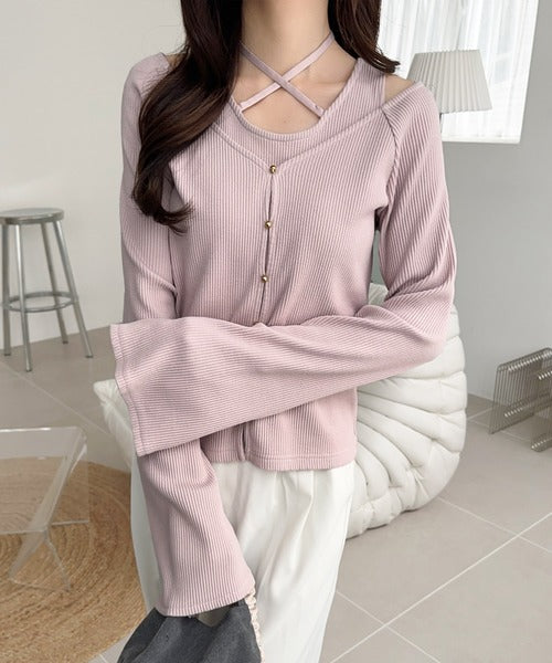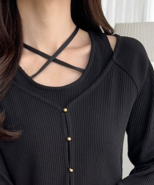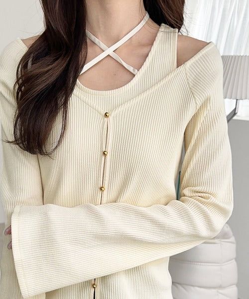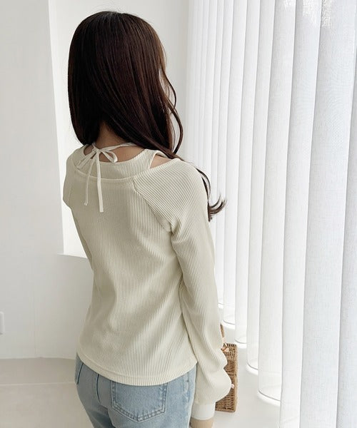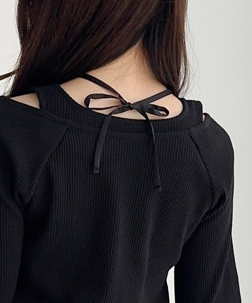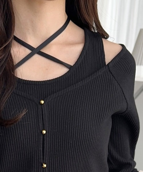 ヘルシーな肌見せが叶うチョーカー付きリブカットソー。