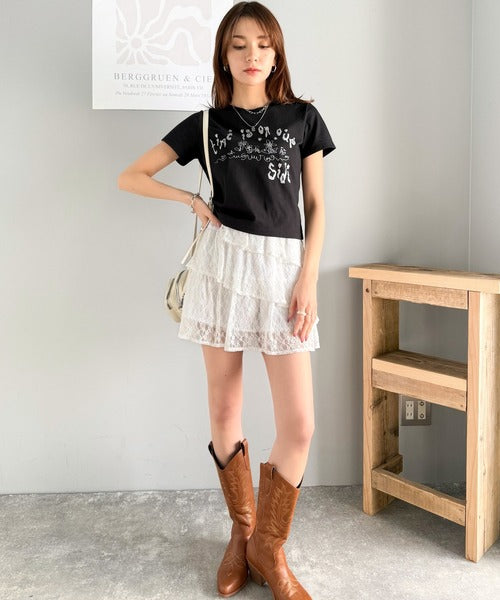 ワイドなボトムスに合わせやすいコンパクトなサイズ感が魅力のTシャツです。