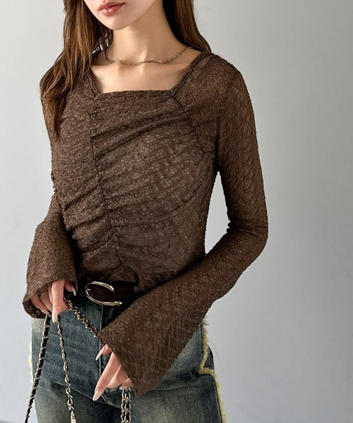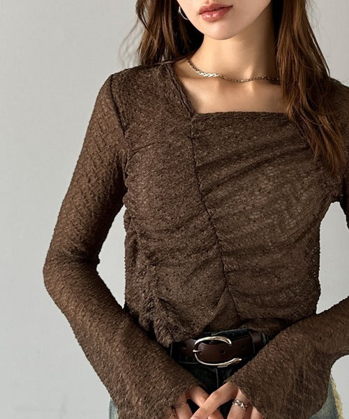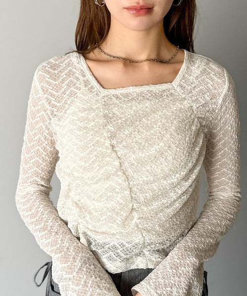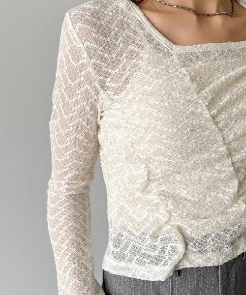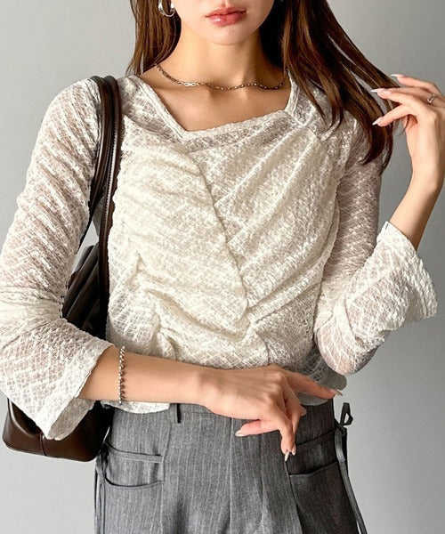 シアーレースを使用したギャザープルオーバー。