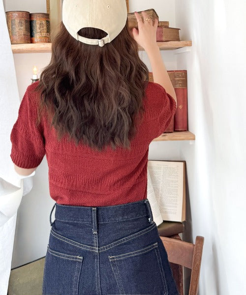 カジュアルコーデを格上げする。ワンポイント刺繍ブークレポロニットトップス(半袖) ce1260392