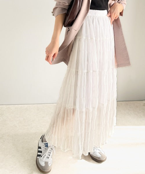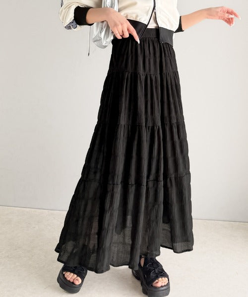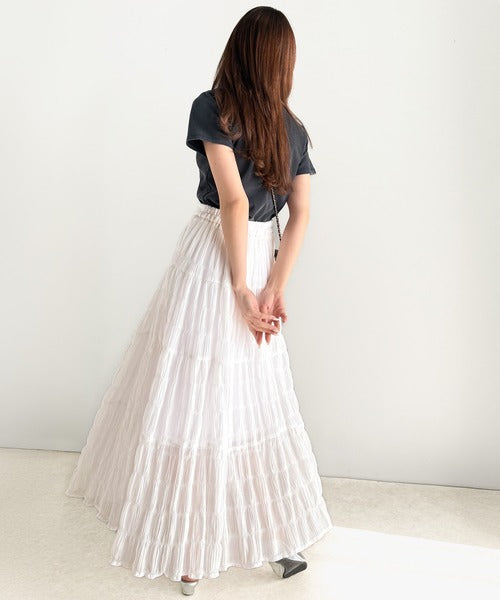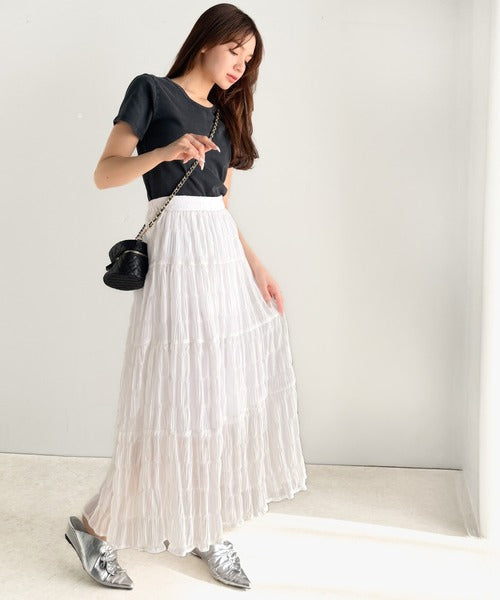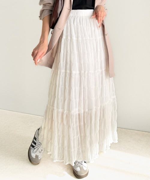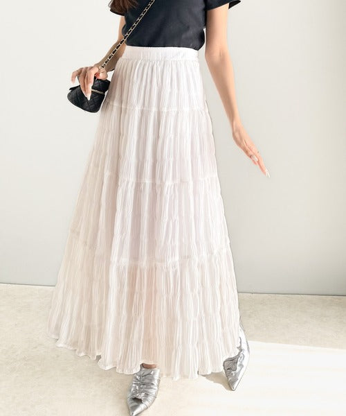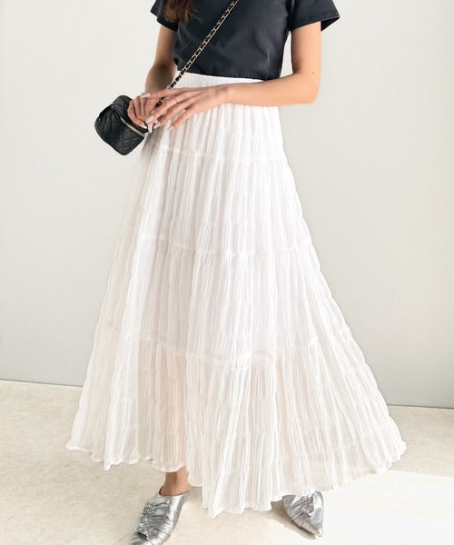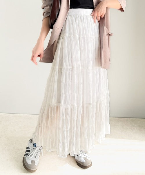 大人のナチュラルスタイル。ぽこぽこワッシャー加工4段ティアードフレアロングスカート ce1015072