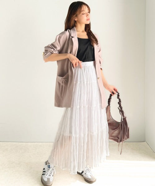 ナチュラルで上品な風合いをティアードスカートにプラスしてくれます。