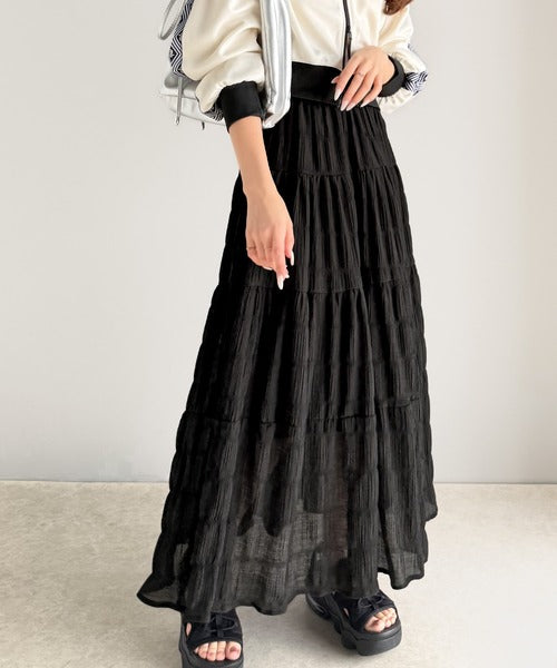 エアリーにふわっと広がるシルエットが可愛いティアードスカート!