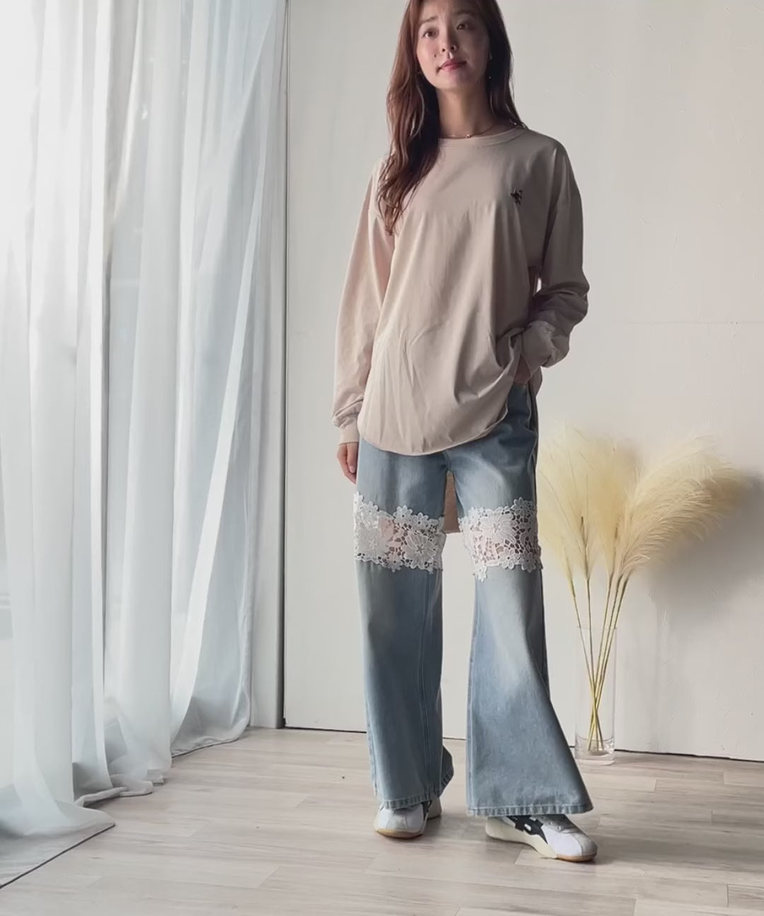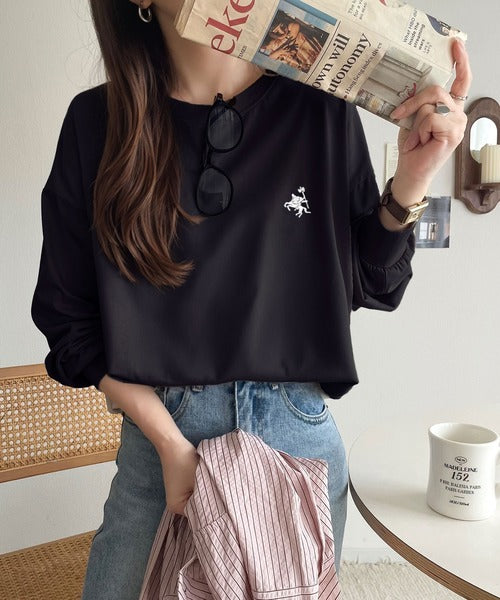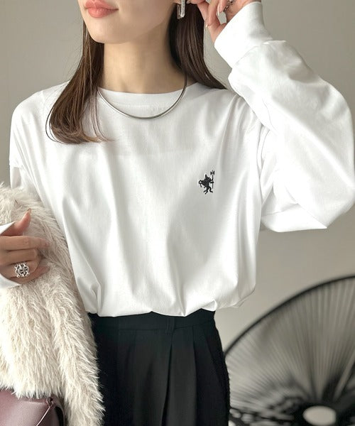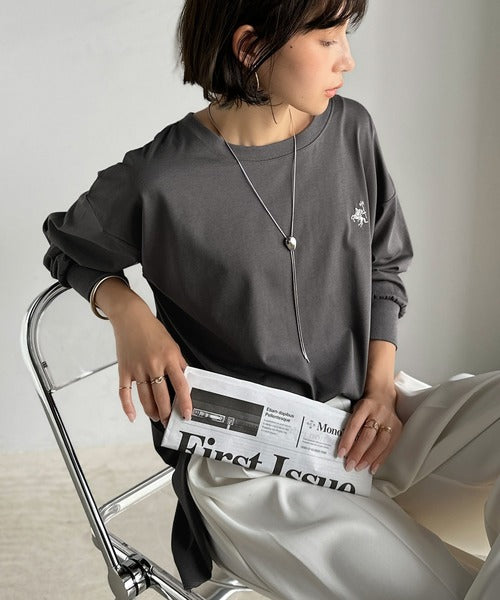 後ろ姿も、抜かりなく。胸刺繍 シルケット素材 ゆったりシルエット レイヤード バックヘンリー 長袖 ロンTEE ce1020307