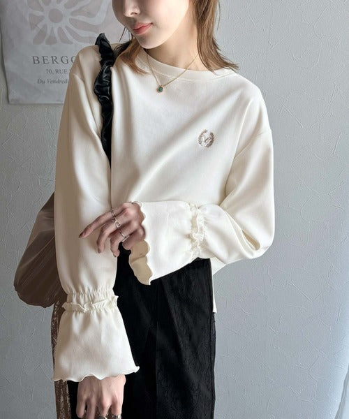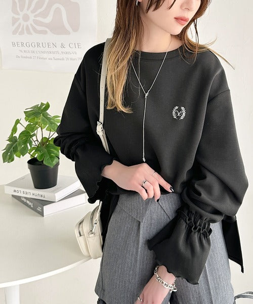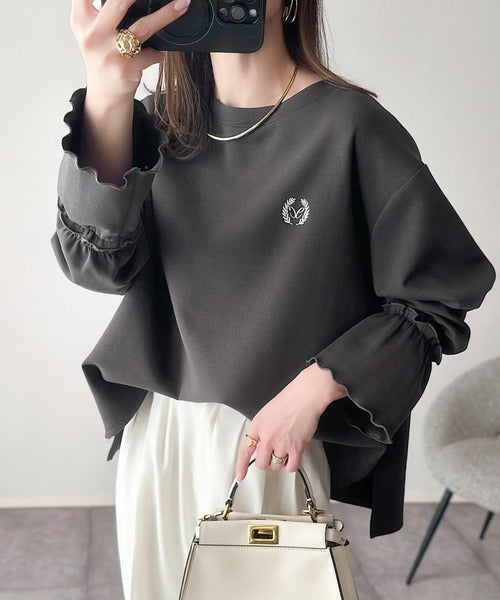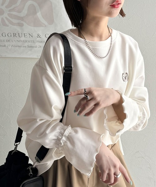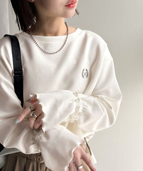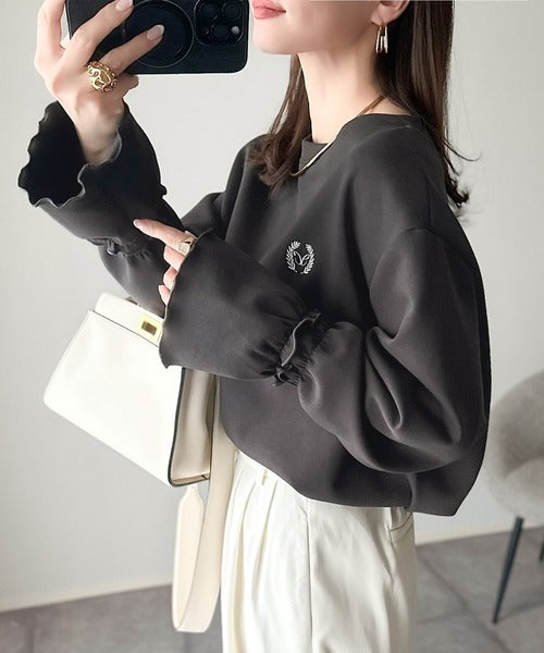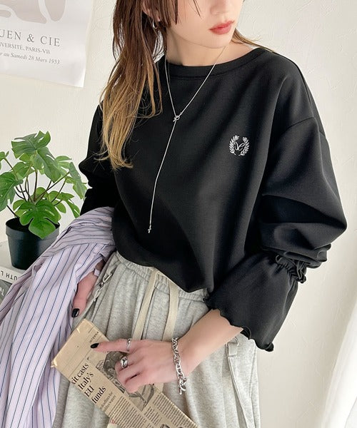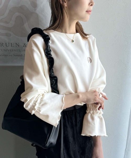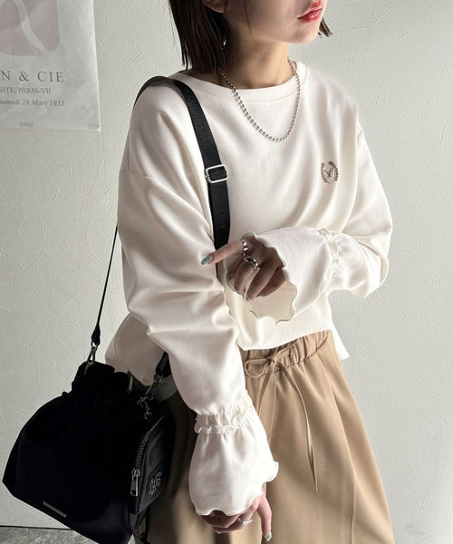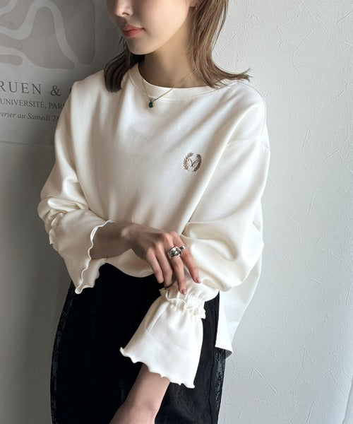 ワンポイントで魅せる大人可愛い。ワンポイントロゴ刺繍キャンディースリーブダンボールニットカットソー(長袖) ce1110110